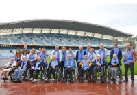 Donostia (Gipuzkoa), 18 de octubre de 2017. Los participantes en los Talleres de Fútbol «Reminiscencia» FEAFV & AFE implementados en el Centro de Día Aita Menni Arrasate y el Centro Gerontológico Julián Rezola Matia Fundazioa, realizaron una visita guiada por el Museo de la Real Sociedad y posteriormente saltaron al Estadio de Anoeta para vivir las emociones de sus recuerdos “txuriurdines” a ras de césped.
