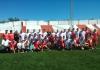 Albaida de Aljarafe (Sevilla), 28 de junio de 2014. La Asociación de veteranos del Sevilla Fútbol Club participó en el homenaje al jugador del equipo de veteranos del Albaida, y también socio de la peña sevillista, Manuel Ibañez Parra, fallecido recientemente.