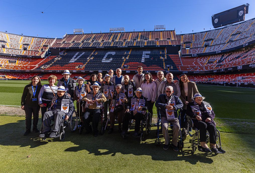 La Asociación Futbolistas del Valencia CF pone fin a los Talleres de Reminiscencia visitando el centenario estadio de Mestalla