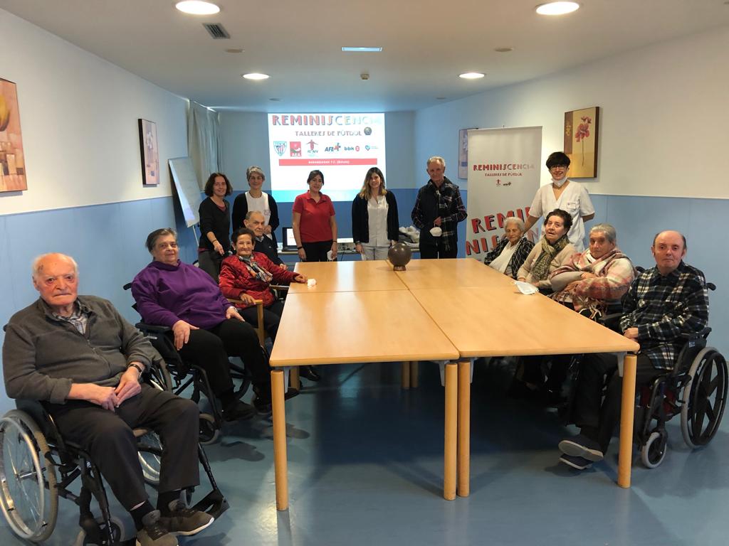 Durango (Vizcaya), 20 de febrero de 2023. Dentro del Proyecto de Reminiscencia basado en el fútbol para personas mayores con deterioro cognitivo impulsado por FEAFV (Federación Española de Asociaciones de Futbolistas Veteranos), la Residencia Joxe Miel Barandiaran-Aita Menni de Durango acogió el pasado día 9 la primera sesión de un nuevo taller de fútbol que se implementará en esta localidad vizcaína con la participación y colaboración tanto de la Asociación de Ex Jugadores del Athletic Club como del club rojiblanco.