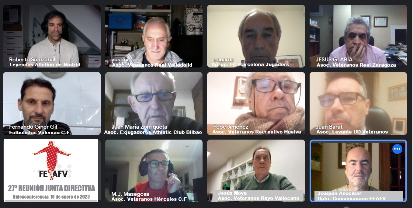 Redacción, 11 de enero de 2023. La nueva Junta Directiva de la Federación Española de Asociaciones de Futbolistas Veteranos celebró ayer por Videoconferencia su 27ª Reunión conforme al siguiente orden del día: