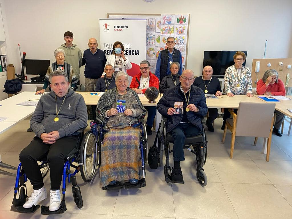 A Coruña, 15 de enero de 2024. La Asociación de Veteranos del Deportivo de La Coruña se dio por terminado su Taller de Reminiscencia basado en el fútbol para personas mayores con deterioro cognitivo, impulsado conjuntamente entre FEAFV (Federación Española de Asociaciones de Futbolistas Veteranos), FUNDACIÓN LALIGA y LALIGA, ha estado implementando durante los últimos tres meses en el centenario Complejo Gerontológico Real Institución Benéfico Social Padre Rubinos de esta preciosa ciudad gallega.