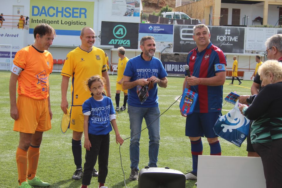 Atzaneta de Albaida (Valencia), 31 de octubre de 2021. Los equipos de fútbol de las Asociaciones de veteranos de la Agrupación Deportiva Alcorcón, Levante UD Veteranos y Hércules CF se desplazaron el pasado domingo 31 de octubre hasta la localidad valenciana de Atzaneta de Albaida para disputar un torneo de futbol de veteranos entre cuatro entidades amigas a favor de una nueva causa solidaria, recaudar fondos a favor de la Asociación Idic 15, que luchan por conseguir ayudas para el estudio e investigación de la enfermedad rara de la inversión duplicación del cromosoma 15.