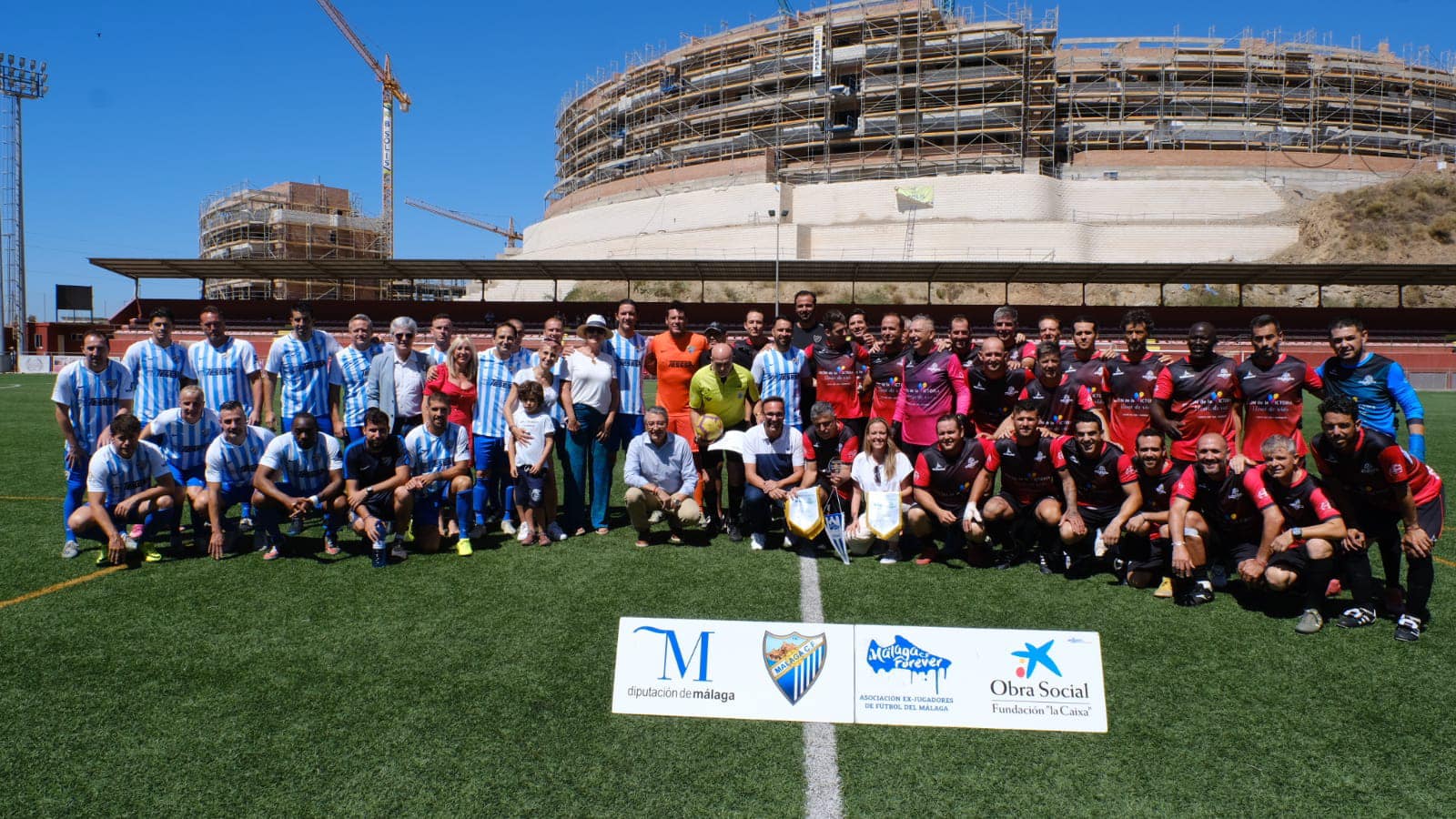La II edición del Partido de Fútbol Solidario, a beneficio de la AECC en Málaga contó con el patrocinio de la Diputación Provincial de Málaga, la colaboración del Ayuntamiento con su Alcalde Francisco Salado a la cabeza, que ha asistido y disfrutado, junto con una notable presencia de público, del entretenido amistoso ente los veteranos del CD Recreativo Rincón Axarquía y las leyendas blanquiazules, que contaron con exjugadores como Calatayud, Jesule, De los Santos, Juanito, Apoño o la nueva coordinadora del MCF femenino, Alicia Fuentes, arropados desde la grada por su excompañero Dely Valdés quien fue una de las atracciones del encuentro.