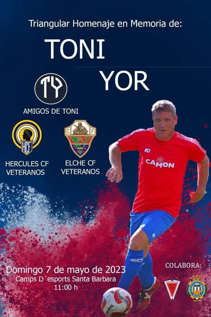 Este I Memorial Toni Yor, en forma de triangular, contó con la presencia de los equipos de Amigos de Toni y los veteranos del Hércules CF y Elche CF, que rindieron un merecido homenaje al jugador monovero.