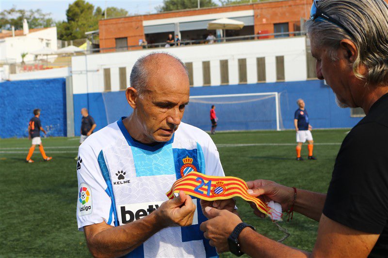A sus 71 años, el emblemático ex jugador del Espanyol disputó un emotivo triangular de fútbol de veteranos organizado por la Fundació Veterans de Sitges (FVS).