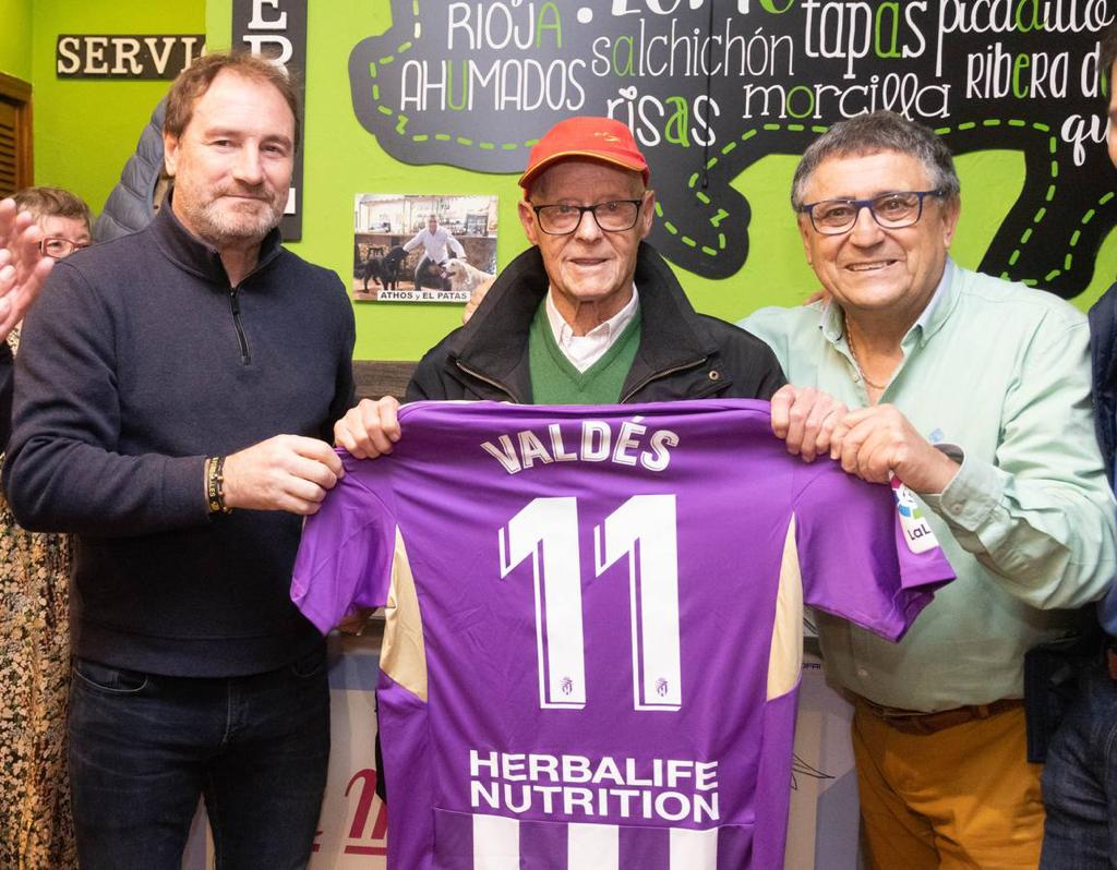 Valladolid, 29 de noviembre de 2022. En un sencillo acto organizado por Alfonso Losco en el local Can Patas del Parque Alameda de Valladolid, la Asociación de Veteranos del Real Valladolis homenajeó al asturiano Valentín Valdés «Fiú», que a sus 93 años, es el único superviviente de la primera victoria del Pucela en campo del Real Madrid, hace 69 años.