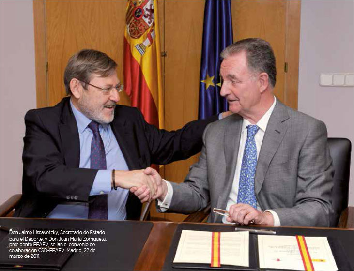 Rubricado por Don Jaime Lissavetzky -Seceratrio de Estado para el Deporte en el año 2011- y Don Juan María Zorriqueta -presidente FEAFV-; el Consejo Superior de Deportes y la Federación Española de Asociaciones de Futbolistas Veteranos sellaban en la sede del Consejo un histórico convenio de colaboración entre ambas instituciones.