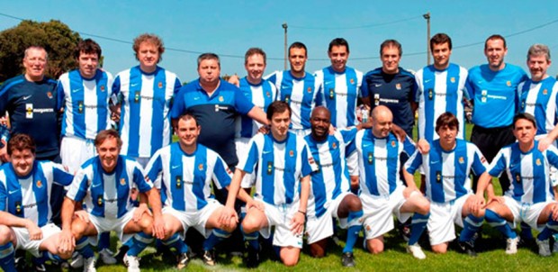 La Asociación de Ex Jugadores de la Real Sociedad de Fútbol nació extraoficialmente en el año 1965 cuando el ex jugador “txuriurdin” José Mª Galardi comenzó a reunir a todos los ex futbolistas blanquiazules para seguir manteniendo las buenas relaciones existentes entre ellos, además de fomentar el espíritu realista. Ya oficialmente se constituyó en el año 2002, de acuerdo a la Ley Orgánica del Gobierno Vasco. En la actualidad cuenta con un total de 175 asociados, de los cuáles aproximadamente 160 de ellos han sido futbolistas profesionales o entrenadores del Club. En el orden deportivo, actualmente, la agrupación atiende en torno a 18-20 partidos por temporada entre amistosos, benéficos y encuentros oficiales encuadrados dentro de la Liga Zonal Norte. Las fuentes de ingresos de la Asociación son, fundamentalmente, dos: Por un lado, las cuotas de los 175 asociados y, por otro, la aportación económica que concede el propio Club. Con el montante económico que suman ambos conceptos la Asociación cubre los gastos de desplazamiento y manutención ocasionados por la disputa de los compromisos deportivos adquiridos y, en la medida de lo posible, atiende las necesidades básicas de compañeros en situaciones de dificultad. La relación con el club es muy estrecha y, además de la aportación económica reseñada, la Real Sociedad aporta a la agrupación todas las equipaciones deportivas necesarias, tanto para el normal desarrollo de entrenamientos como para la disputa de todos los compromisos deportivos de carácter oficial. Asimismo, pone a disposición de la asociación las instalaciones de Zubieta tanto a nivel de terrenos de juego y vestuarios como de despachos, salas de reuniones y servicios informáticos y telefónicos para las labores administrativas de la Asociación. Hasta la fecha la agrupación “txuriurdin” solo ha conocido dos presidente, José Mª Castivia -que lo fue durante muchos años y hasta su fallecimiento- y Alberto Gorriz, que ostenta el cargo en la actualidad. Y entre la excelsa lista de ilustres protagonistas sobre el césped se podría citar a Roberto Lopez Ufarte, Perico Alonso, Luis Arkonada, Jose Mª Martínez, Gaztelu, Rafa Mendiluze, Jesús Zamora, Jose Mª Bakero, Jesus Mª Satrustegi, Agustín Aranzabal, Agustin Gajate y un larguísimo etcétera.