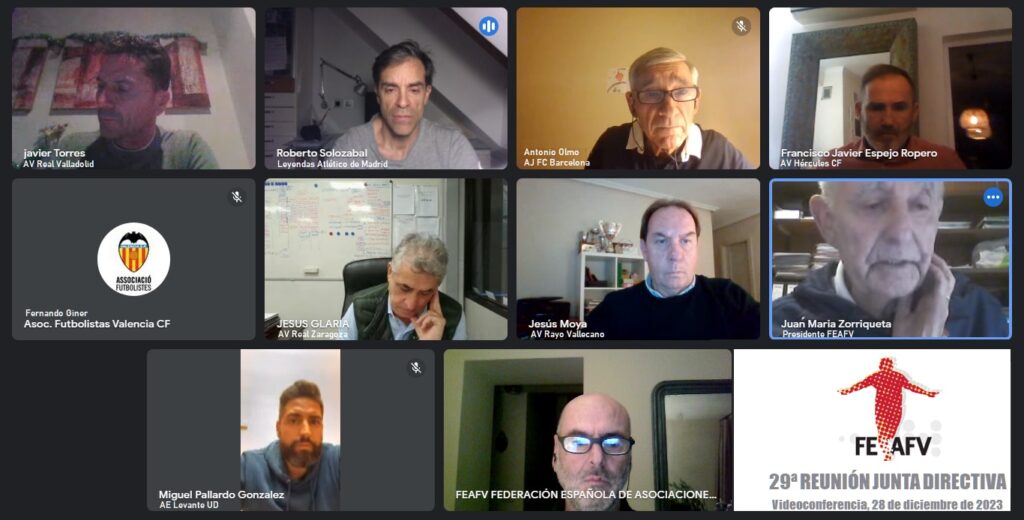 Redacción, 28 de diciembre de 2023. La 29ª Reunión de la Junta Directiva de la Federación Española de Asociaciones de Futbolistas Veteranos celebrada hoy por Videoconferencia conforme al siguiente orden del día: