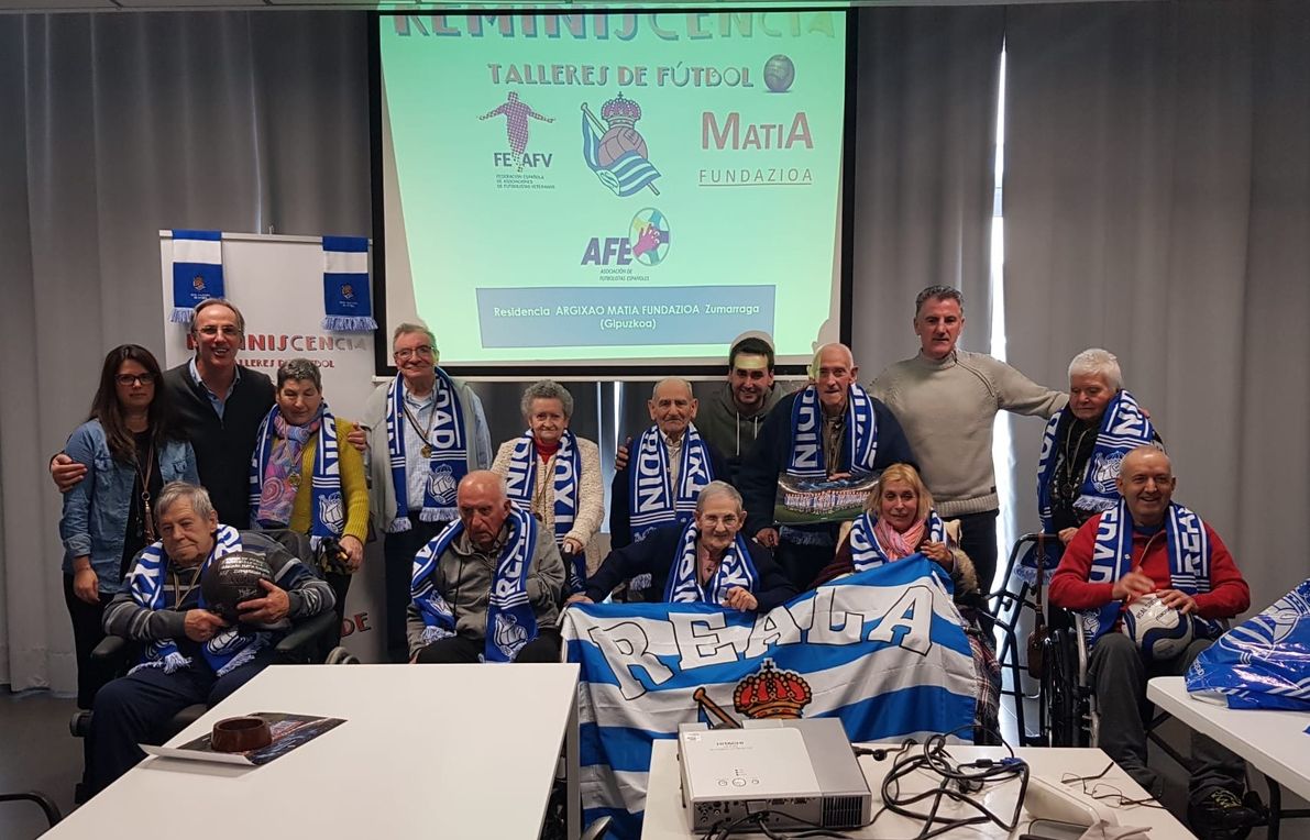Zumárraga (Guipuzcoa), 5 de diciembre de 2019. Ésta mañana se ha despedido el primer Taller de este semestre. Bixio Gorriz, exjugador de la Real y actual presidente de la Asociación de Veteranos del club Txuri Urdin y Michel Loinaz, como dinamizador, cerraban emocionados el Taller de Fútbol y «Reminiscencia» FEAFV & AFE en la Residencia Argixao MatiaFundazioa de Zumárraga en el que han disfrutado haciendo un poco más felices a los participantes del mismo.
