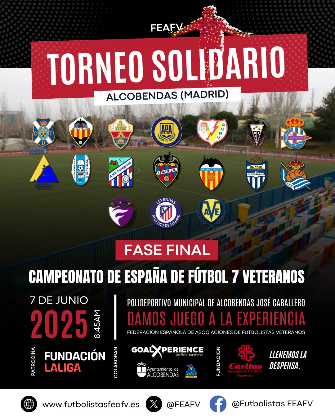 Desde la organización queremos poner en valor el apoyo institucional del Ayuntamiento de Alcobendas y empresarial que hace posible esta cita anual, un apoyo sin el que este torneo no sería posible y que aún está abierto para colaboraciones. Destacar también el esfuerzo tanto económico como de organización que la FEAFV está llevando a cabo esta temporada con su apuesta por dar un fuerte impulso al cartel del Torneo Solidario para convertir el evento en auténtico referente de la categoría de Veteranos en España.