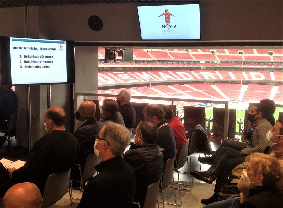 Madrid, 18 de noviembre de 2021. Tras más de 2 años de no poder reunirnos presencialmente a causa de la pandemia del COVID-19, el pasado jueves 18 de noviembre (día en el que se conmemoraba el XVI aniversario de la FEAFV), el Estadio Wanda Metropolitano de la ciudad de Madrid acogió la 14ª Asamblea General Ordinaria y la Asamblea Extraordinaria de la Federación para dar cuentas del proceso electoral celebrado en los meses de julio y agosto del presente año.