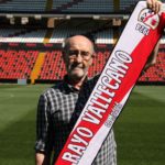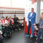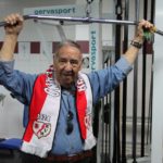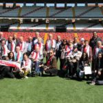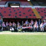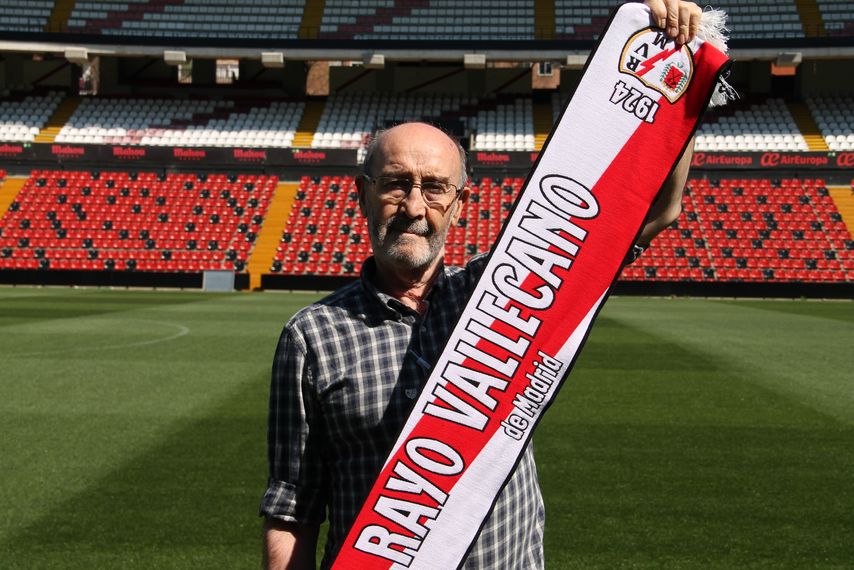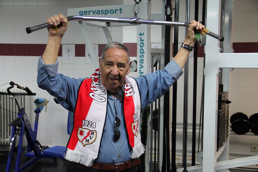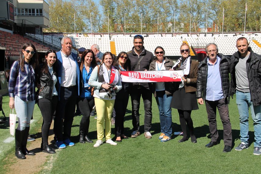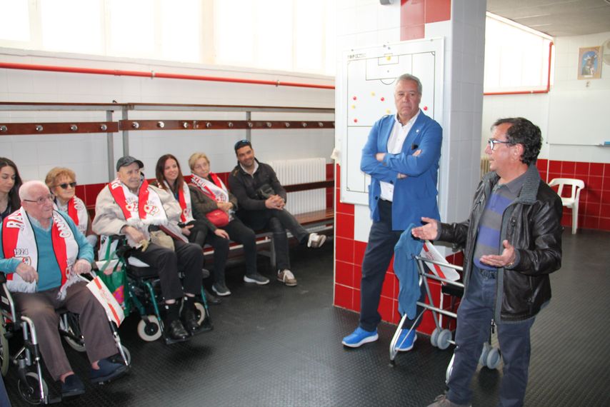 Vallecas (Madrid), 25 de marzo de 2019. Un numeroso grupo de residentes de Ballesol Alcalá de Henares visitaron el Estadio de Vallecas acompañados y arropados en todo momento por ex futbolistas del Rayo Vallecano como Jose Luis Gallego, Michel II, Jose Mari y los hermanos Elías y Lorenzo Benito.