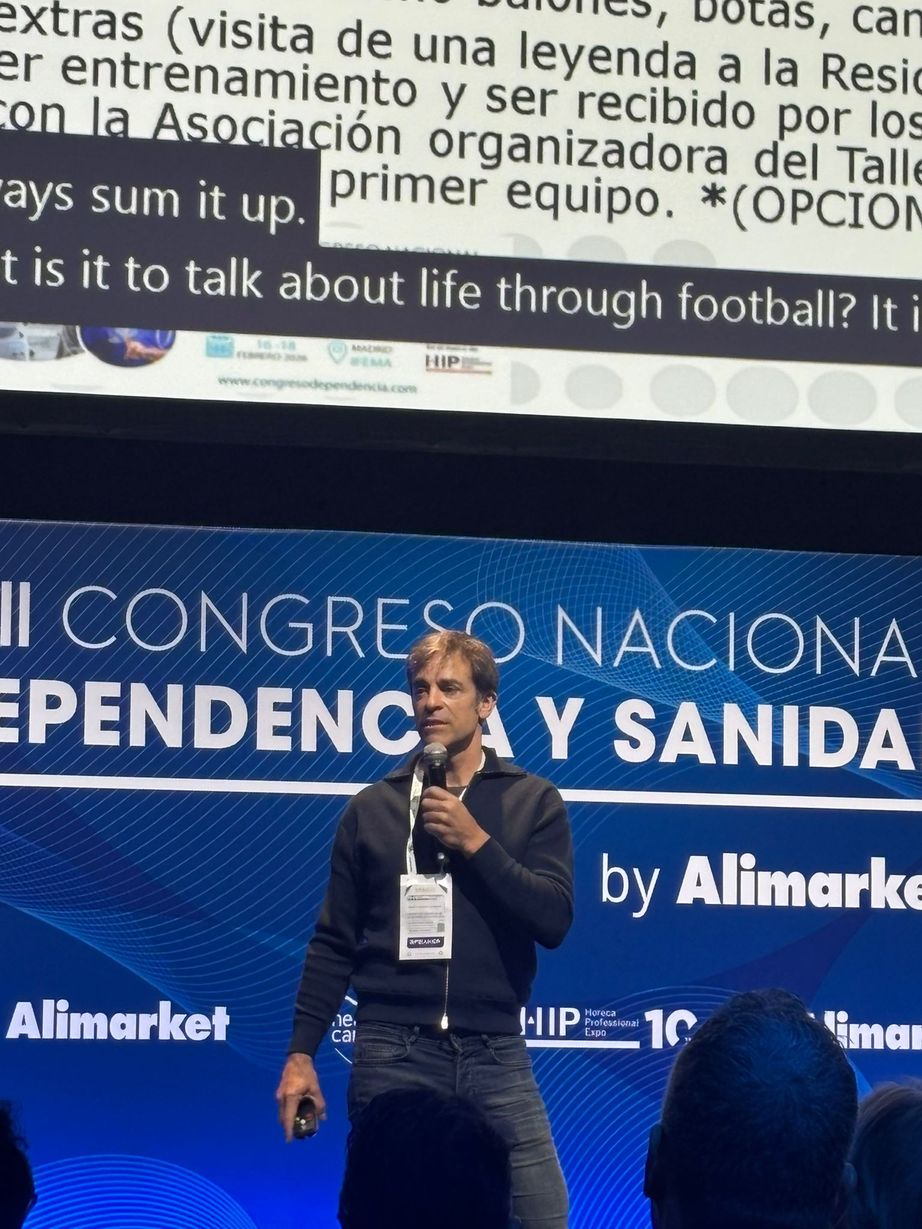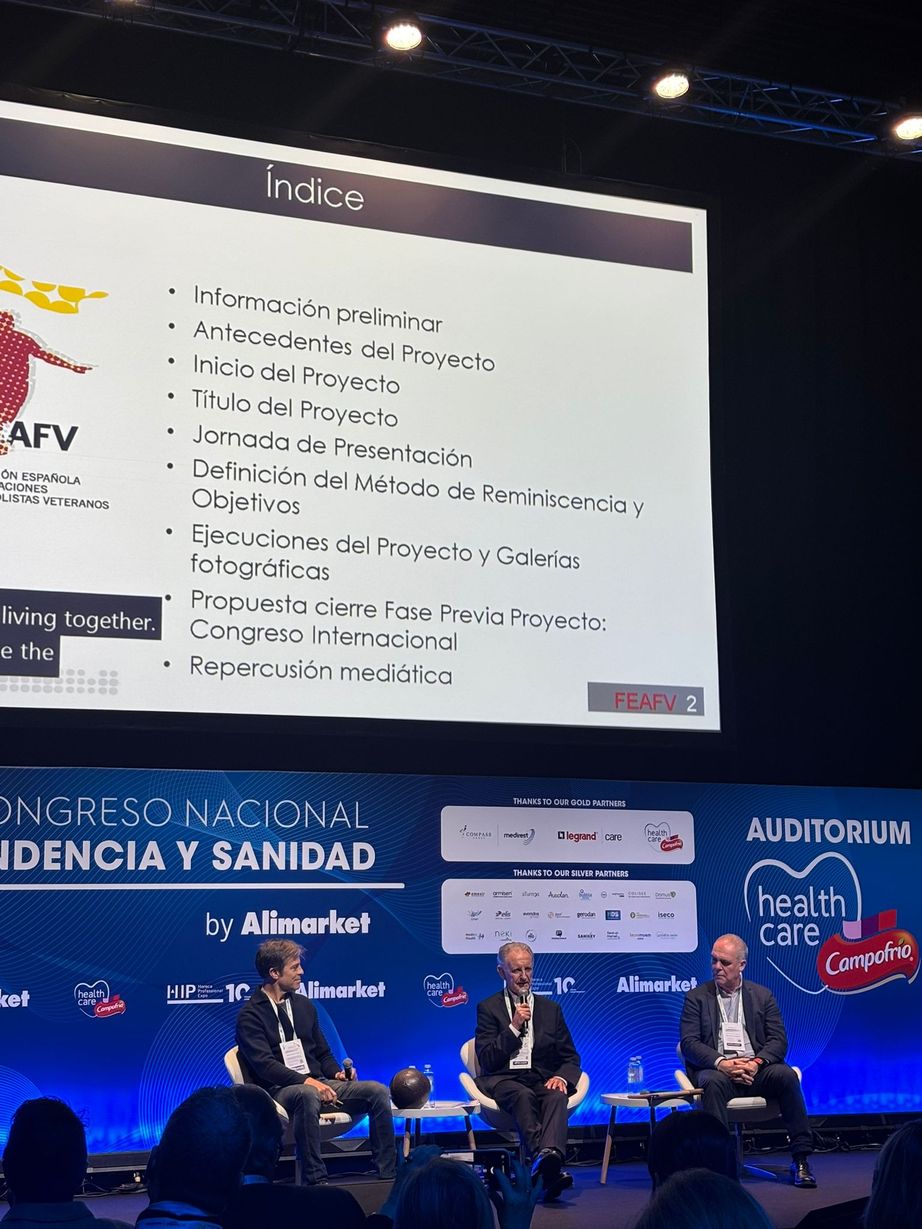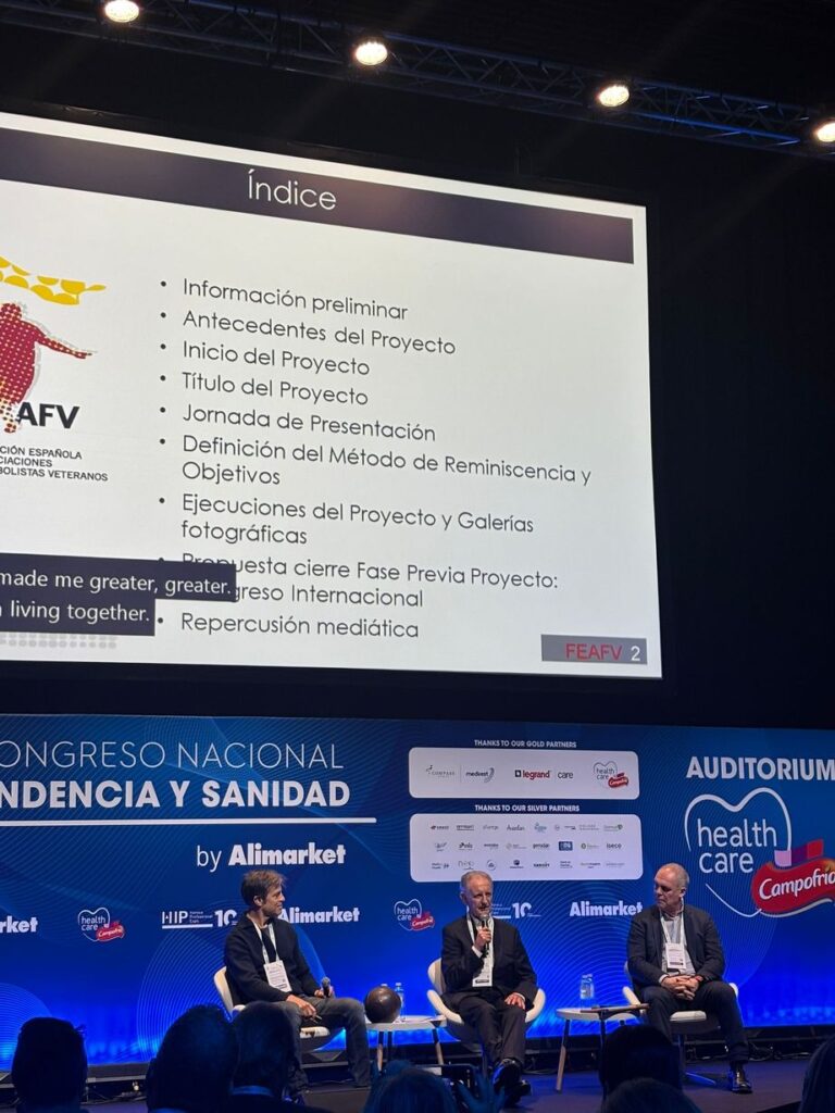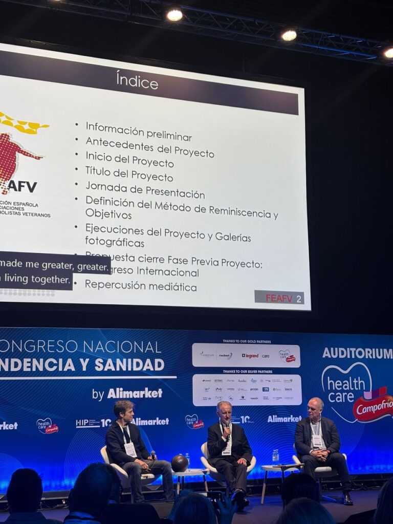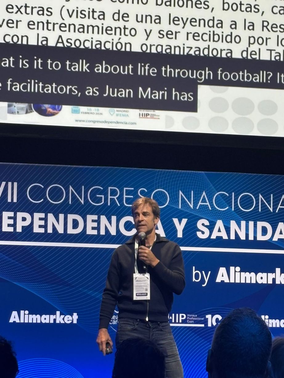 Redacción, 18 de febrero de 2026. El pasado lunes 16 Juan Mari Zorriqueta (Presidente de Honor de la FEAFV), Roberto Solozábal (Presidente de la FEAFV y de la Asociación Leyendas del Atlético de Madrid), José Ezquerra Iribarren (Psicólogo Especialista en Psicología Clínica Coordinador Línea Persona Mayor en FUNDACION HOSPITALARIAS EUSKADI) y Joaquín Anocibar (Responsable Comunicación FEAFV) se desplazaron hasta la Feria de Madrid IFEMA en representación de la Federación Española de Asociaciones de Futbolistas Veteranos invitados al «VII Congreso Nacional Dependencia y Sanidad» a exponer nuestro «Proyecto Fútbol Reminiscencia», una terapia de reminiscencia no farmacológica basada en el fútbol y que llevamos realizando desde el 2013 por toda la geografía española a través de las Asociaciones miembros de la FEAFV con el apoyo y financiación de la FUNDACION LALIGA.