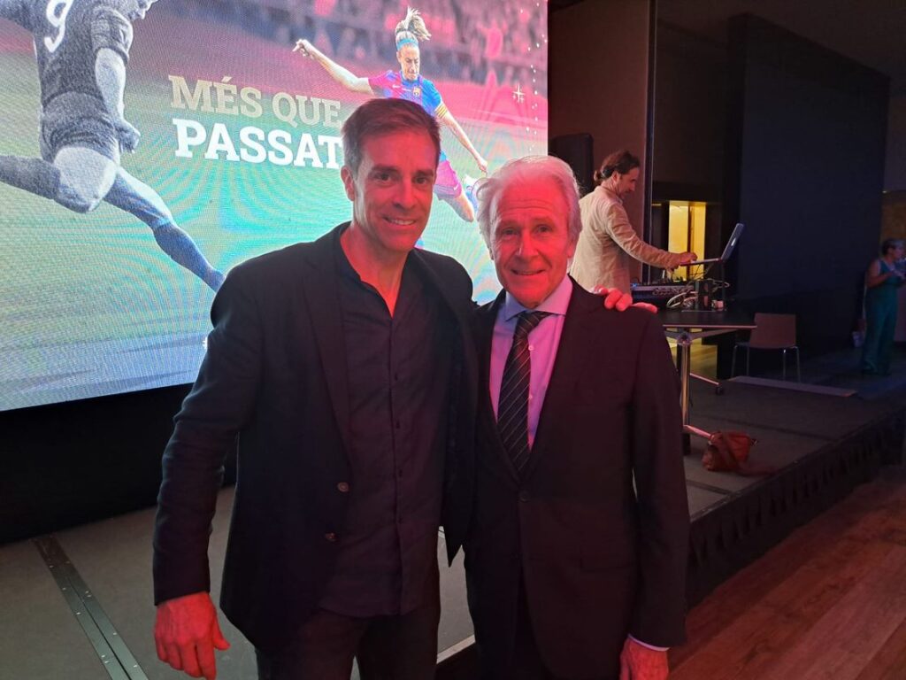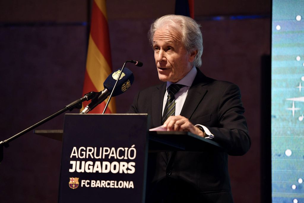Barcelona, 29 de noviembre de 2022. Roberto Solozábal, presidente de la Asociación Leyendas Atlético de Madrid, acudió en calidad de vicepresidente primero de la Federación Española de Asociaciones de Futbolistas Veteranos (FEAFV) a la cena anual de la Agrupació Jugadors FC Barcelona que se convirtió en reconocimiento a la labor de Ramón Alfonseda, que se despide tras haber presidido la Agrupació en los últimos 20 años y que desde los inicios de la FEAFV ha ocupado una de sus tres vicepresidencias .
