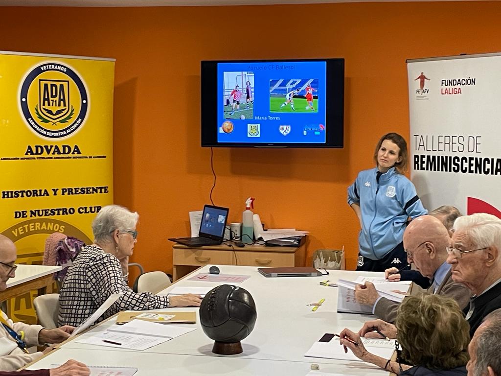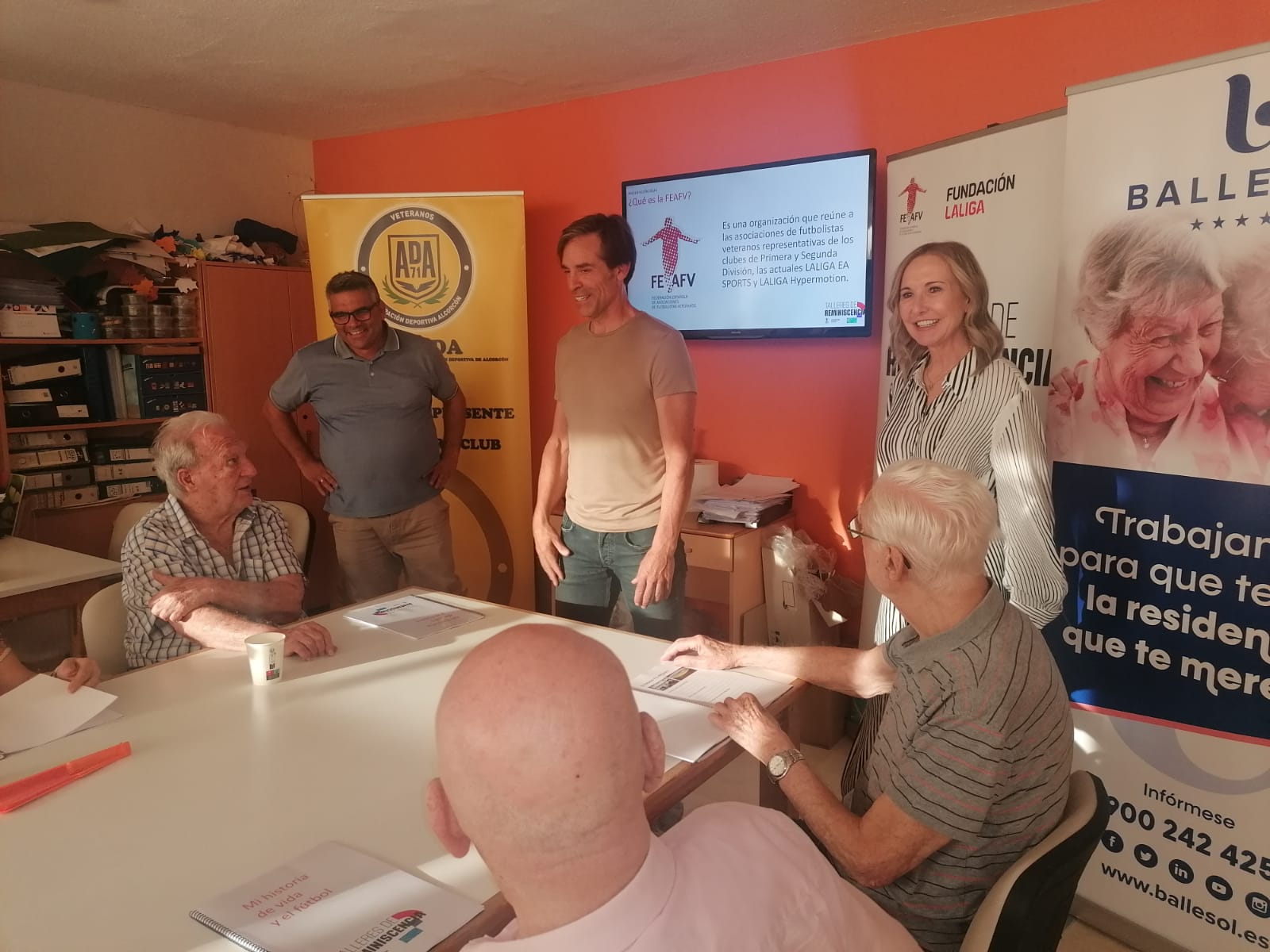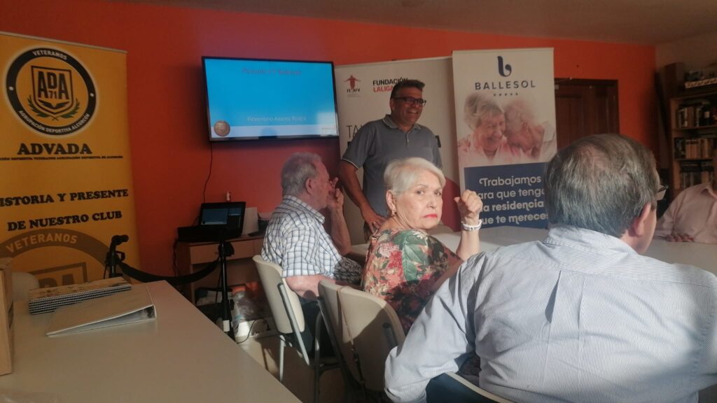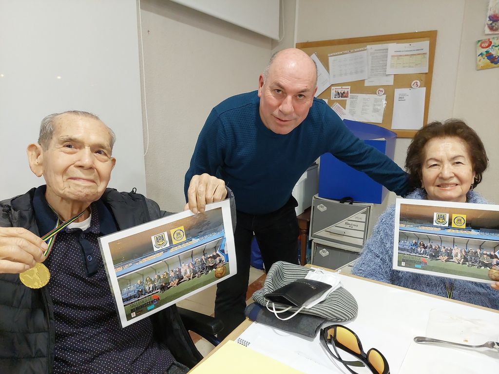 En la última sesión, que ha servido para destacar aquello que ha gustado más de estos talleres a los diferentes integrantes, los veteranos de la AD Alcorcón pudieron entregar las medallas y un obsequio recuerdo. El taller finalizó con las intervenciones la psicóloga de Ballesol, y el animador de la residencia, que explicaron los diferentes avances que los residentes habían tenido gracias a estos talleres que desde septiembre del 2023 están apoyadoa por la FUNDACIÓN LALIGA y por LALIGA.