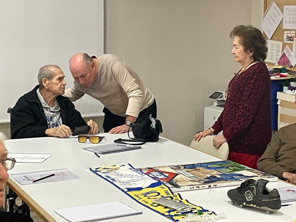 Madrid, 10 de marzo de 2024. El pasado 13 de enero los veteranos de la AD Alcorcón dieron punto y final a su taller de reminiscencia que desde principios de octubre han estado realizando en la Residencia Ballesol Pozuelo de Madrid. Una terapia que consiste en que las personas mayores usuarios de la residencia trabajen la memoria y se relacionen con otras personas a través de diferentes talleres que tienen como nexo el fútbol. Sesiones que van desde el contar su historia hasta visitar el estadio Municipal de Santo Domingo pudiendo pasar un rato divertido con los jugadores alcorconeros.