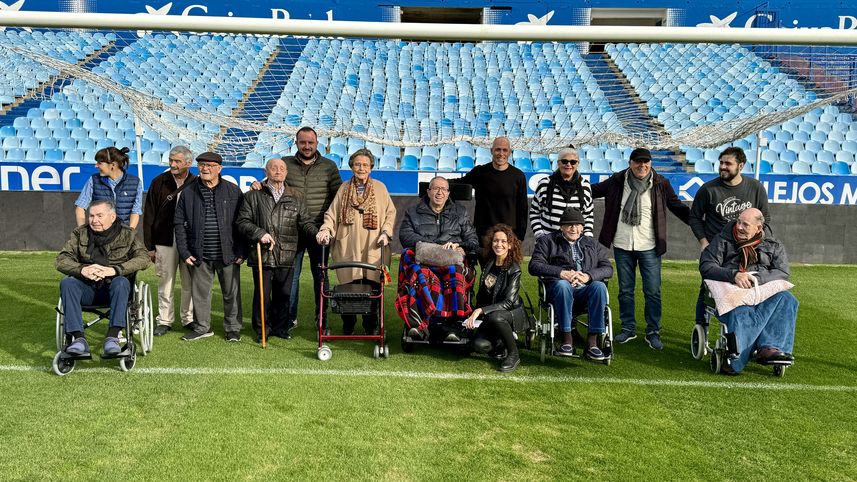 Zaragoza, 12 de diciembre de 2023. Concluye con éxito el primer Taller de Fútbol y Reminiscencia implementado por la Asociación de Veteranos del Real Zaragoza en la Residencia de personas mayores Ballesol Mariana Pineda de la capital maña. Y que mejor escenario para bajar el telón del Taller que el Estadio La Romareda, feudo del Real Zaragoza y que tantos recuerdos trae a la memoria de los participantes usuarios de dicha residencia y de sus familiares acompañantes.