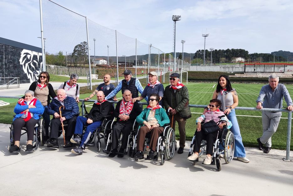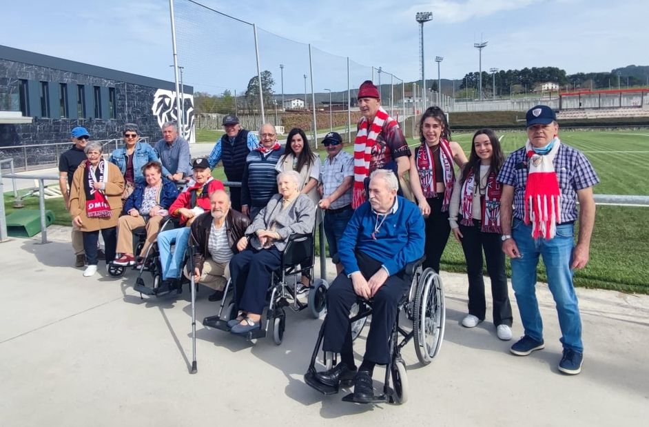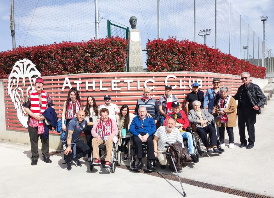 Lezama (Vizcaya), 30 de marzo de 2023. El Athletic Club de Bilbao ha recibido la visita a Lezama, lugar de entrenamiento del equipo, de los participantes del Taller de reminiscencia basado en el futbol de los Centros Residenciales de Conde de Aresti de Bilbao y Joxe Miel Barandiaran-Aita Menni de Durango
