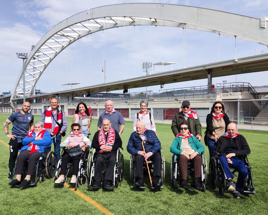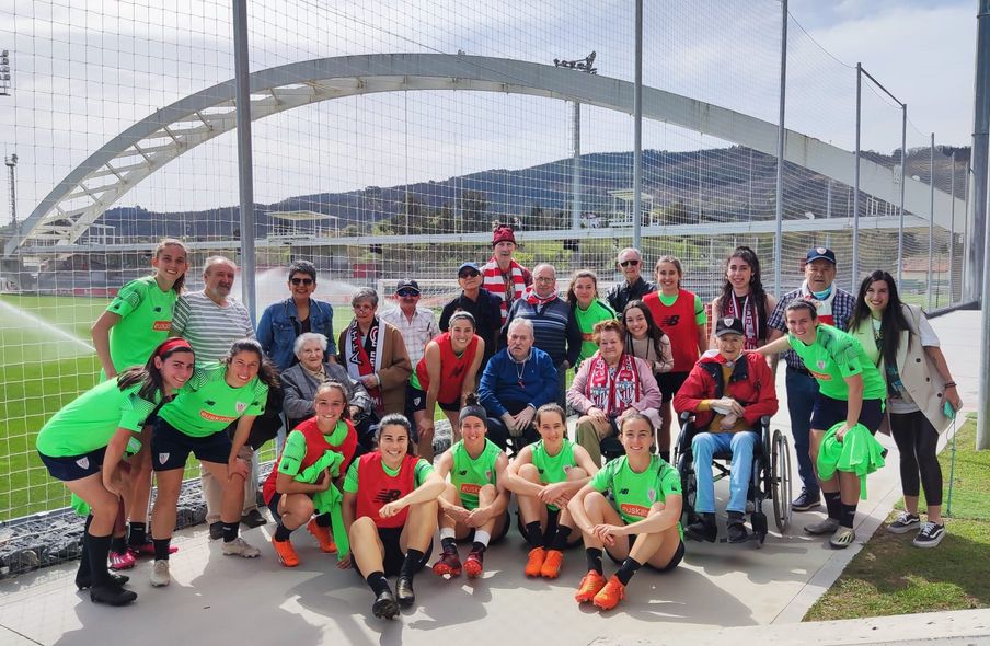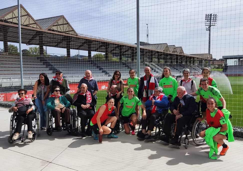 Los residentes pudieron disfrutar de una mañana especial viendo el entrenamiento del equipo femenino del Athletic Club y haciéndose fotos con las jugadoras de fútbol profesional al término del mismo.