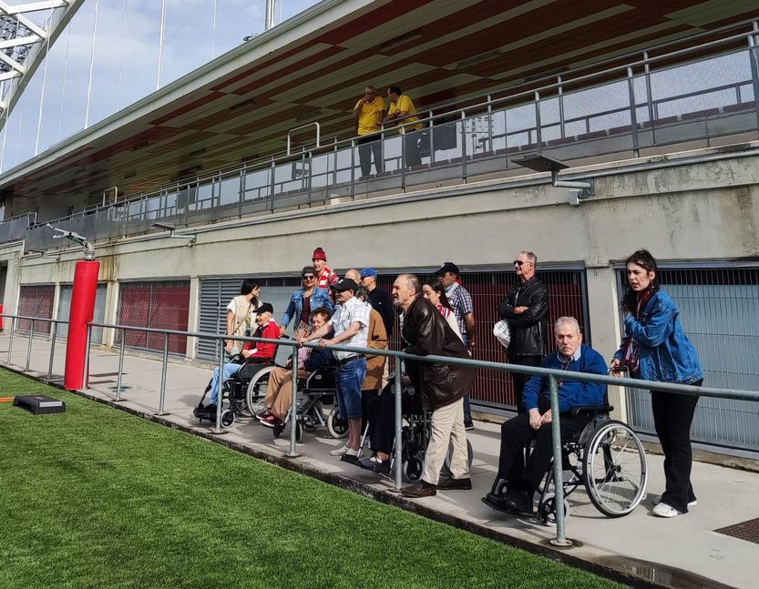 Estuvieron acompañados en todo momento por el presidente de la FEAFV Juan Mari Zorriqueta y por los exjugadores del Athletic y Dinamizadores de los talleres de Reminiscencia Aitziber Juaristi «Tzibi» y Ander Lafuente. La leyenda del Athletic y de la Selección española Jose Angel Iribar «Txopo» se acercó a saludar y a hacerse fotos con los visitantes.