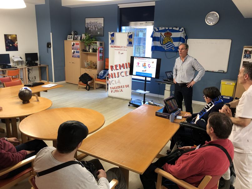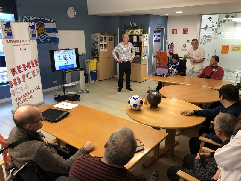 San Sebastián (Guipuzcoa), 7 de febrero de 2020. El Centro de Día de Daño Cerebral Aita Menni de Zuatzu en Donosti acogió la sesión inaugural del taller de fútbol “Reminiscencia” FEAFV & AFE con la participación y colaboración de la Asociación de Veteranos de la Real Sociedad.