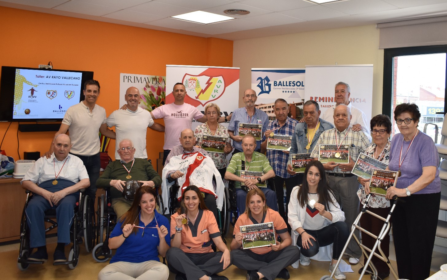 Redacción, 18 de julio de 2019. Finalizados los 16 talleres de Fútbol implementados durante el primer semestre del año en dieciséis centros residenciales de los grupos Ballesol, Aita Menni, DomusVi, Conde Aresti y Matacàs, con el apoyo y la participación directa de las Asociaciones de Futbolistas del Atlético de Madrid, Valencia CF, Hércules CF, Athletic Club de Bilbao, Real Sociedad, Rayo Vallecano, AD Alcorcón, Real Betis Balompié, Deportivo de la Coruña y FC Barcelona.