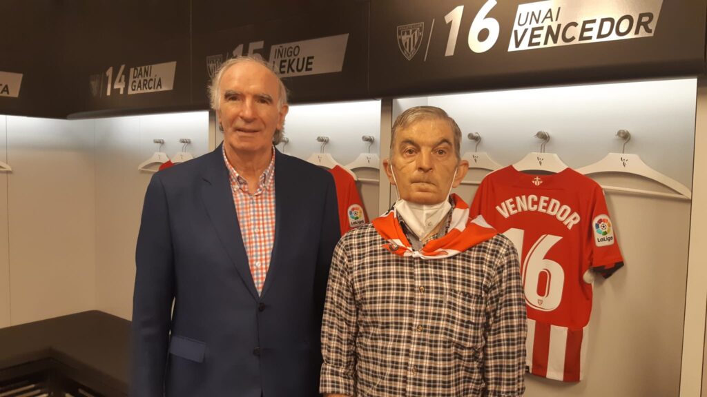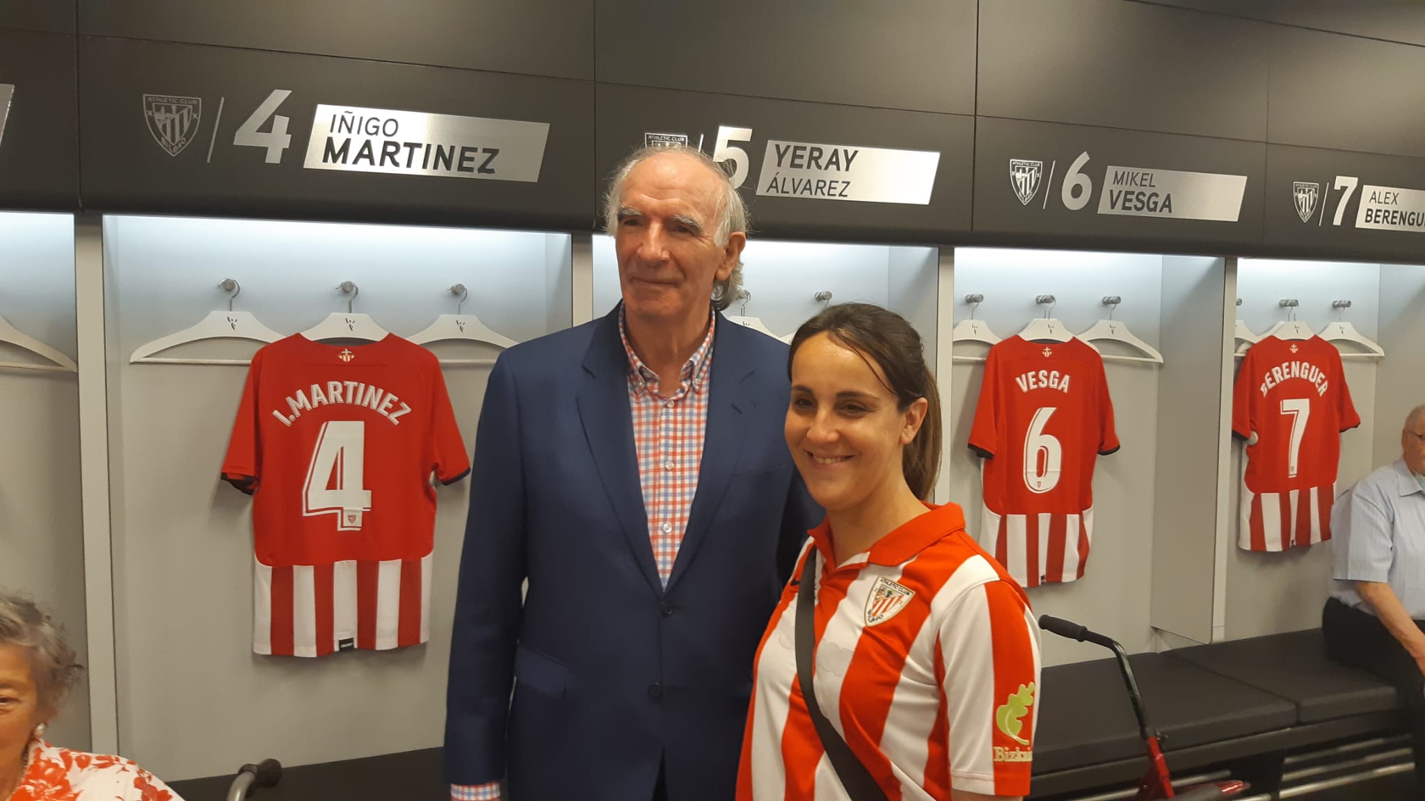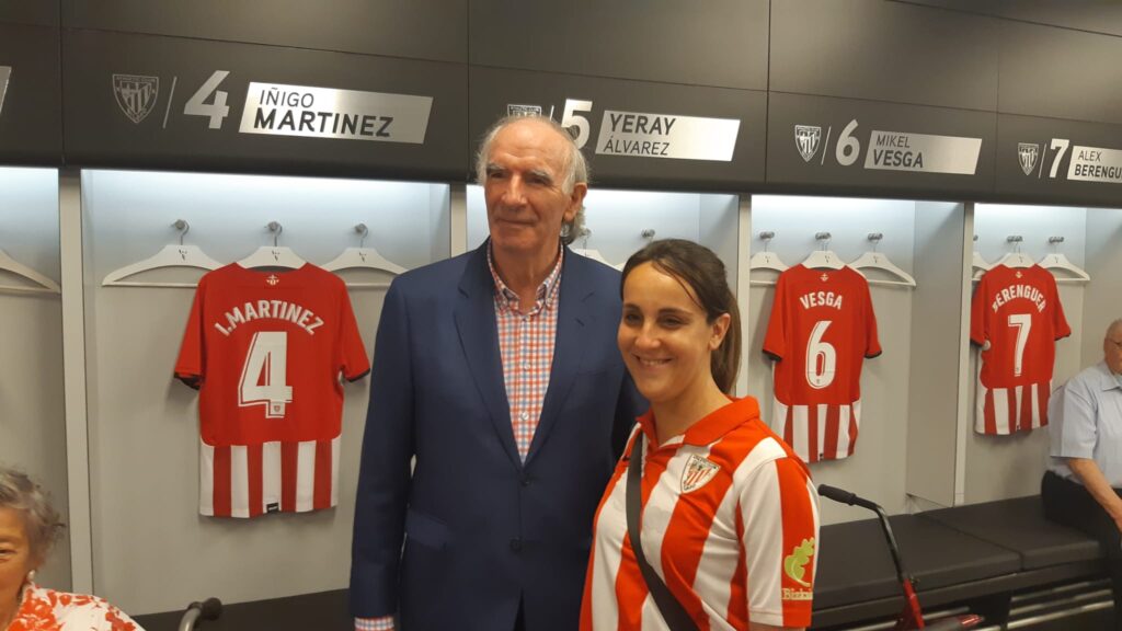 Ningún guía mejor para la ocasión que Jose Angel Iribar, que, acompañado por el ex león y presidente de la FEAFV Juan Mari Zorriqueta.además de ,Pablo Otaolea, quienes con los dinamizadores del Taller Ander Lafuente y Aitziber Juaristi «Txibi» estuvieron muy cercanos y pendientes de los visitantes durante toda su estancia en San Mamés en la que recorrieron el Museo, Sala de Prensa, vestuarios e incluso tuvieron oportunidad de pisar el cuidado césped de La Catedral.