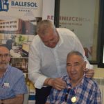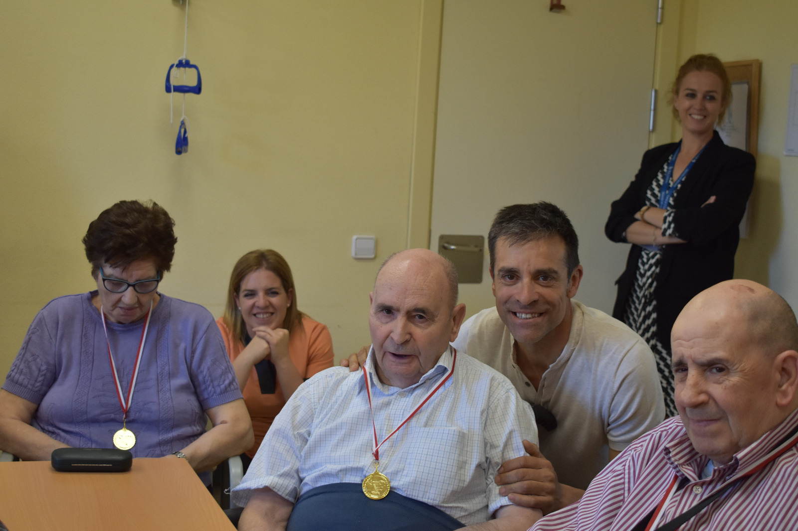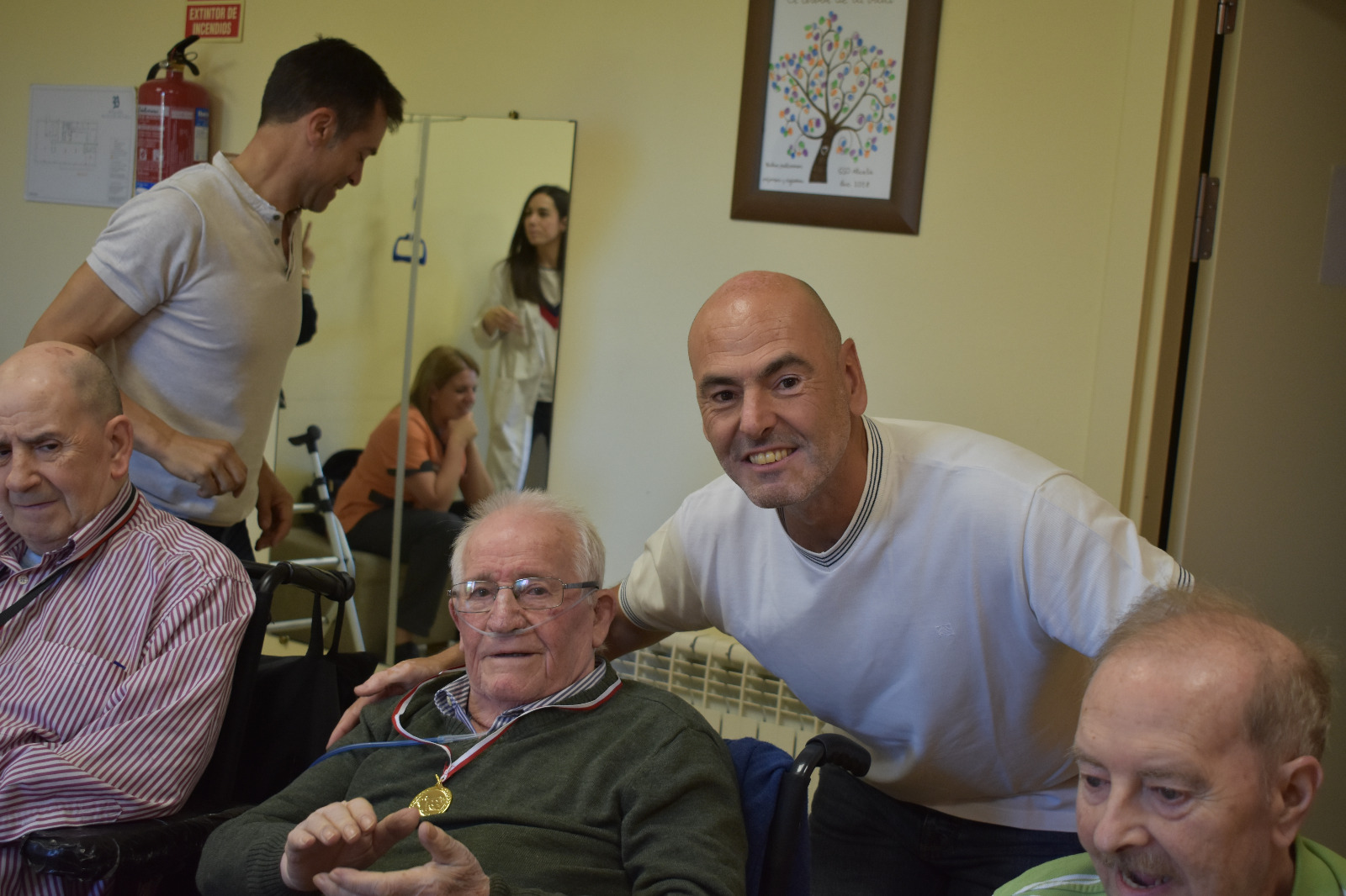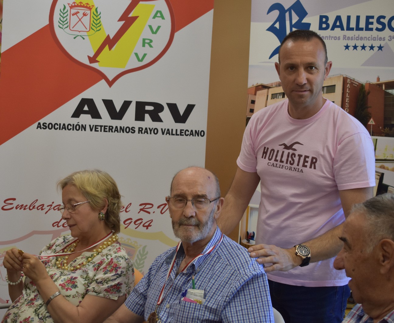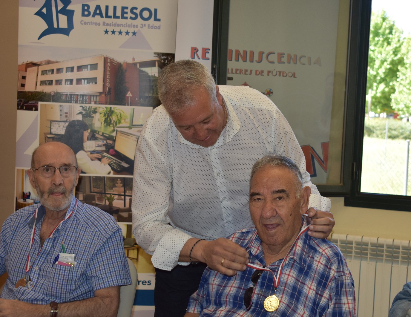 Tras 12 entretenidas y emocionantes sesiones, los exfutbolistas del club vallecano se despidieron entregando medallas y un recuerdo fotográfico a todos los participantes además del balón de cuero firmado por todas las leyendas del club de la franja para la propia residencia.