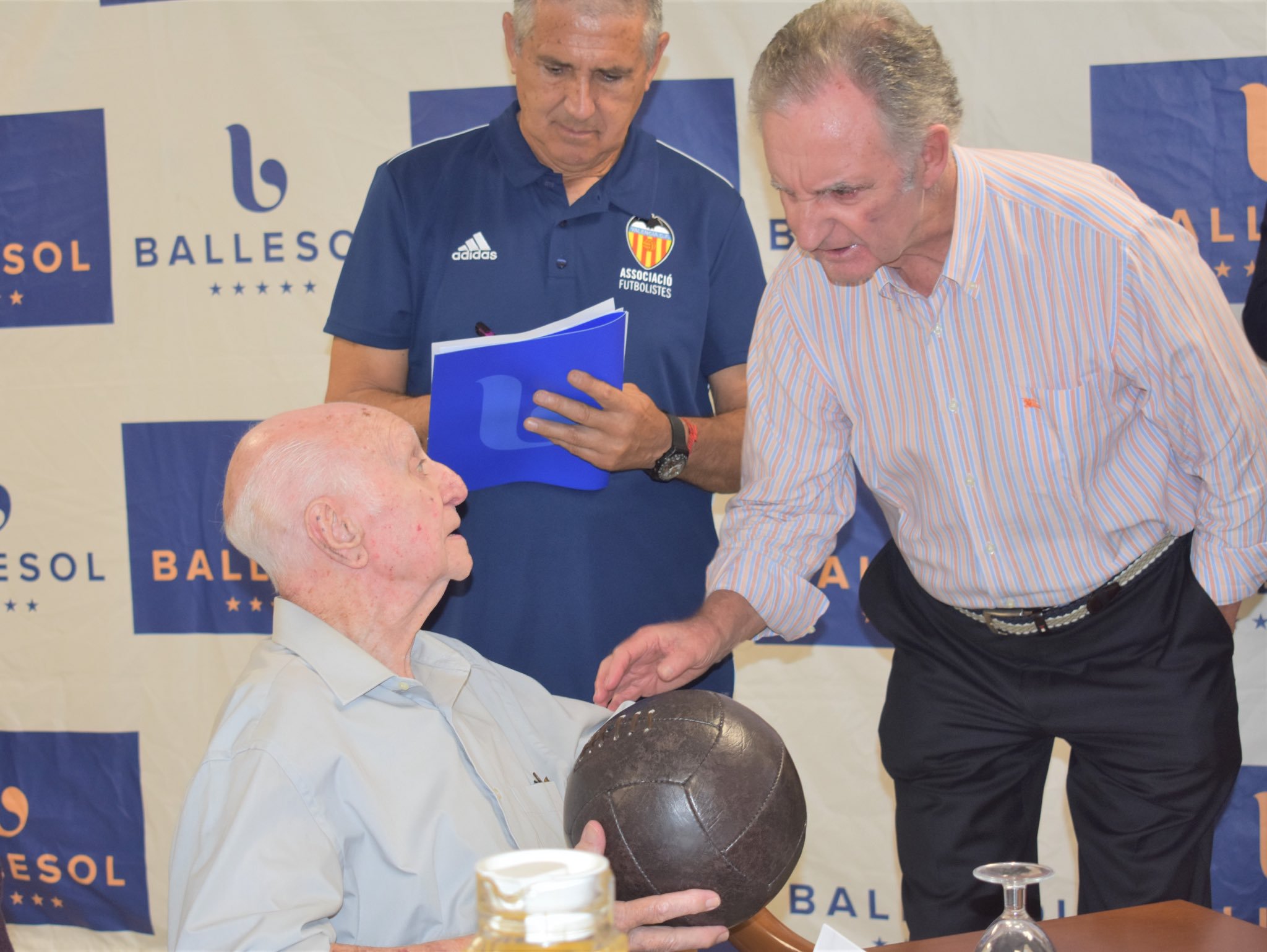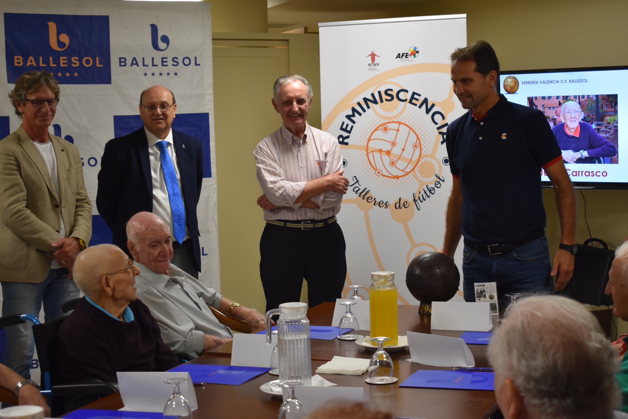 La Asociación de Futbolistas del Valencia C.F. estrena el Taller de Fútbol y Reminiscencia en la Residencia Ballesol Serrería de la capital del Turia