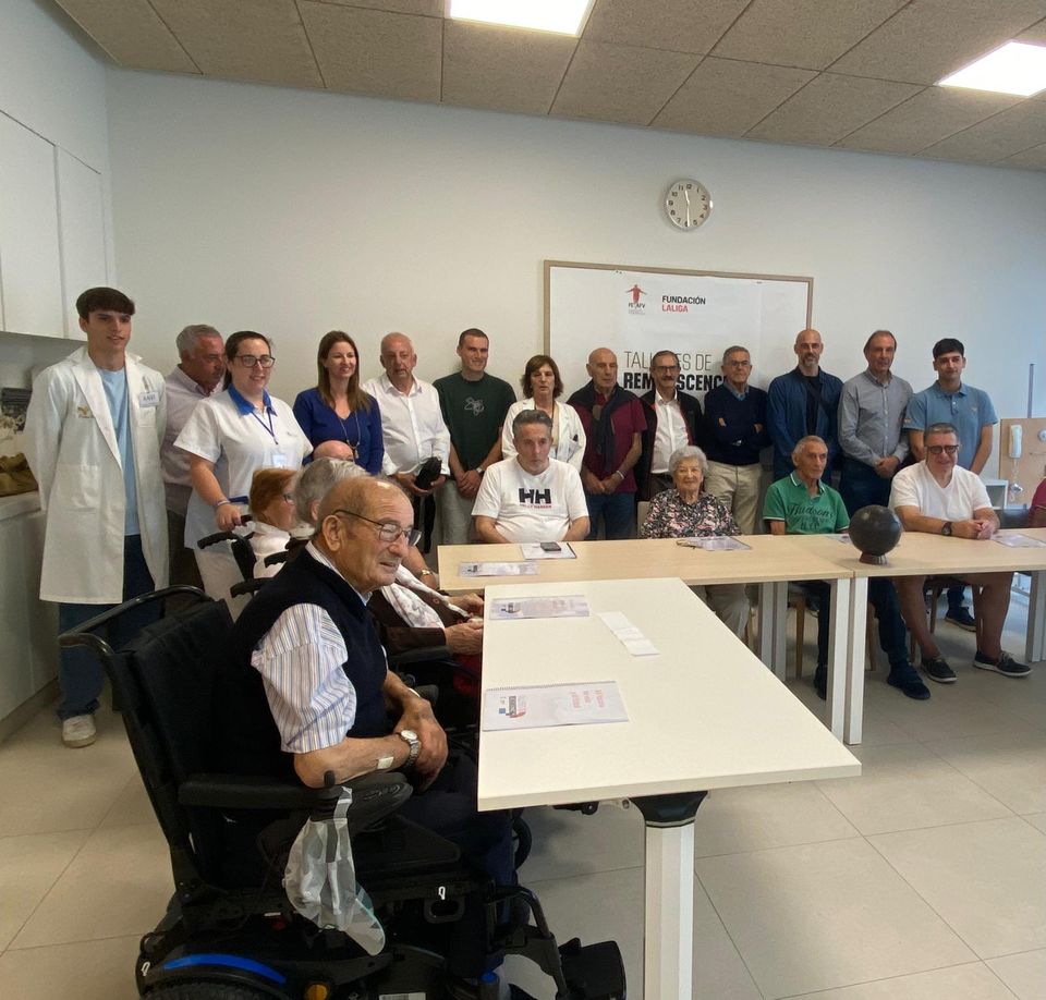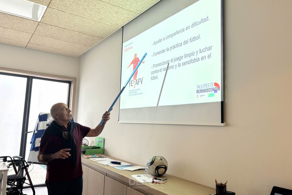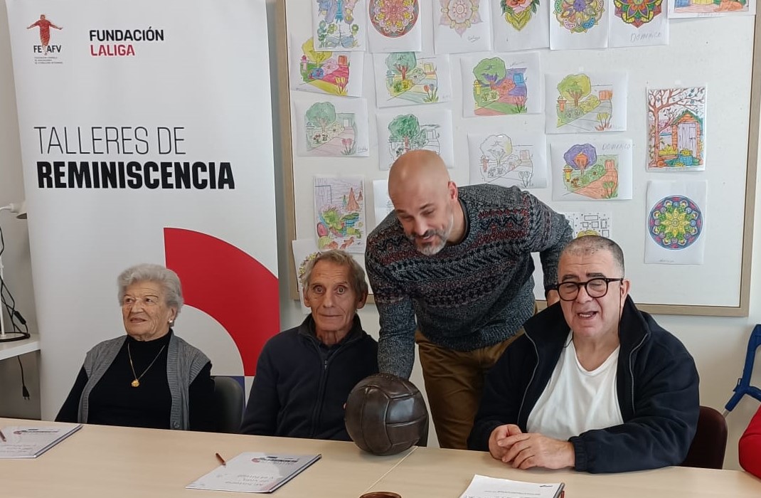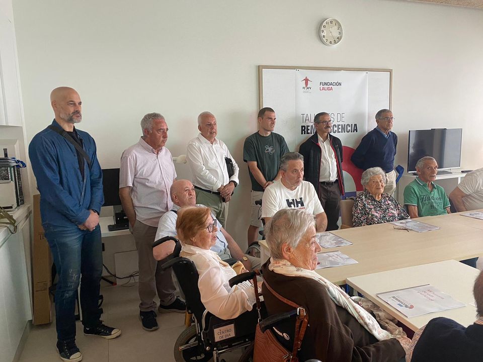 A Coruña, 15 de enero de 2024. La Asociación de Veteranos del Deportivo de La Coruña se dio por terminado su Taller de Reminiscencia basado en el fútbol para personas mayores con deterioro cognitivo, impulsado conjuntamente entre FEAFV (Federación Española de Asociaciones de Futbolistas Veteranos), FUNDACIÓN LALIGA y LALIGA, ha estado implementando durante los últimos tres meses en el centenario Complejo Gerontológico Real Institución Benéfico Social Padre Rubinos de esta preciosa ciudad gallega.