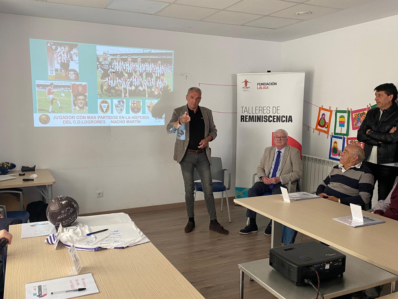 La visita de Nacho Martin, jugador que más partidos oficiales ha disputado del Club Deportivo Logroñés, echa el cierre a un apasionante taller de reminiscencia en AFA La Rioja