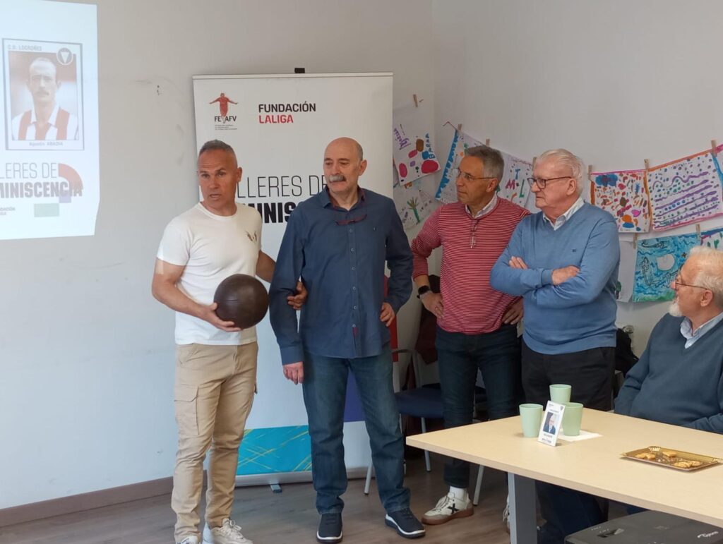 El Taller de Reminiscencia, que comenzó a principios de marzo con Gerardo García y Antonio Hidalgo como dinamizadores del mismo, ha llevado un apasionante camino empezando con la visita especial de Agustín «Tato» Abadía, histórico jugador del CD Logroñés que hizo disfrutar y recordar tiempos pasados a los 12 participantes que conformaron el equipo del Centro Manresa de AFA La Rioja.