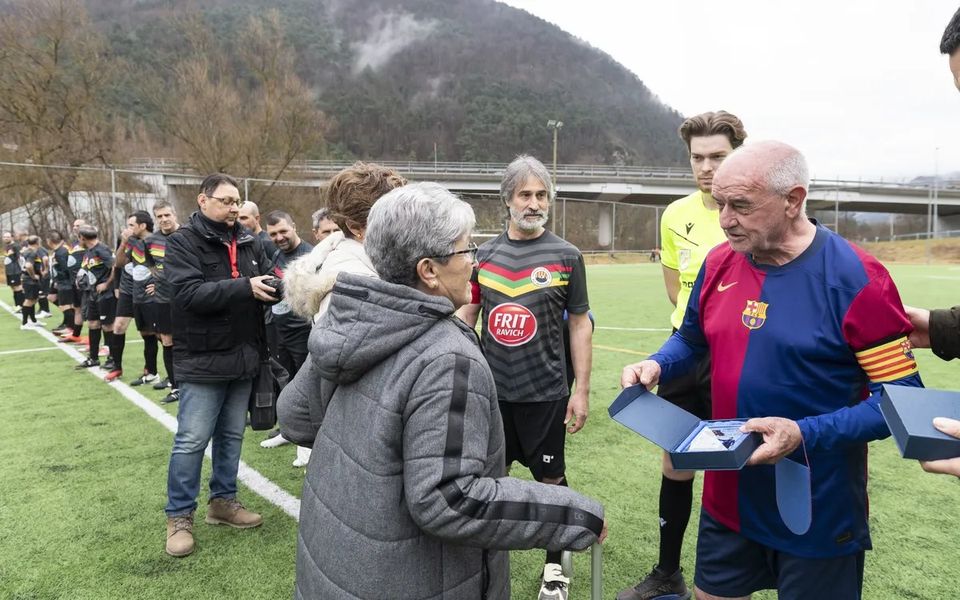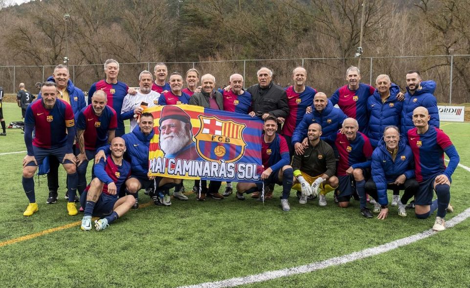 Guardiola de Berguedà (Barcelona), 27 de febrero de 2025. El pasado sábado 22 de febrero, el equipo masculino de la Agrupació de Jugadors del FC Barcelona, acompañado por su presidente Juan Manuel Asensi, el vicepresidente Rafael Zuviría y el presidente del Barça Atlètic, Jordi Casals, se desplazaron a la localidad de Guardiola de Berguedà para rendir homenaje a Joan Casals, “l’Avi del Barça”, quien fue simpatizante de la Agrupació y nos dejó el 14 de febrero de 2024.