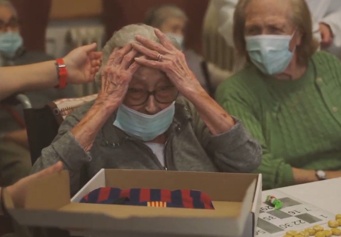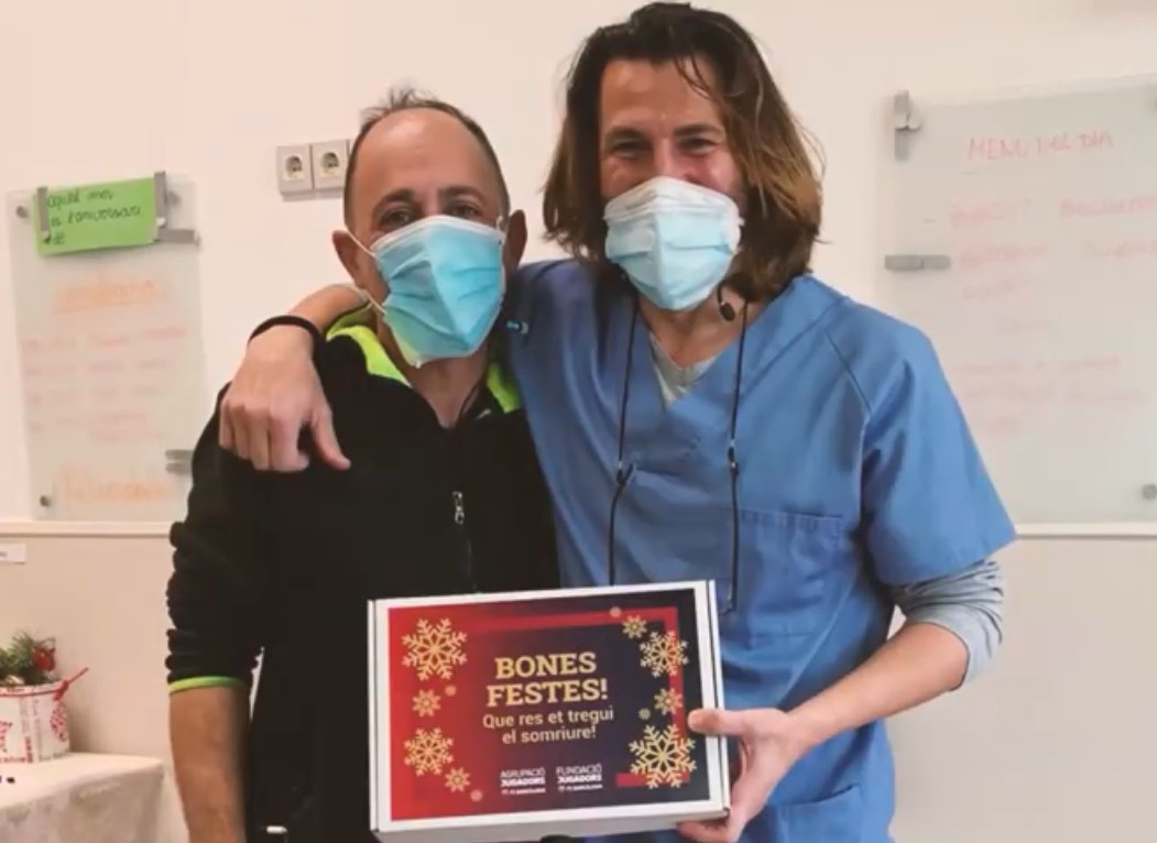 Barcelona, 13 de enero de 2021. Durante las fiestas de Navidad la Agrupación de Jugadores del FC Barcelona no quiso olvidar aquellos que peor lo están pasando a raíz de la pandemia del coronavirus. Por ello, la asociación envió un total de 200 camisetas oficiales a todas las residencias con las que colabora. Esta acción, inédita, se llevó a cabo conjuntamente entre la Agrupación y la Fundación de Jugadores. Todos aquellos que obtuvieron la camiseta también pudieron recibir un mensaje de apoyo por parte del vicepresidente de la Agrupación, y exjugador del Club, Tente Sánchez, que quiso desear a todos los residentes unas felices fiestas.