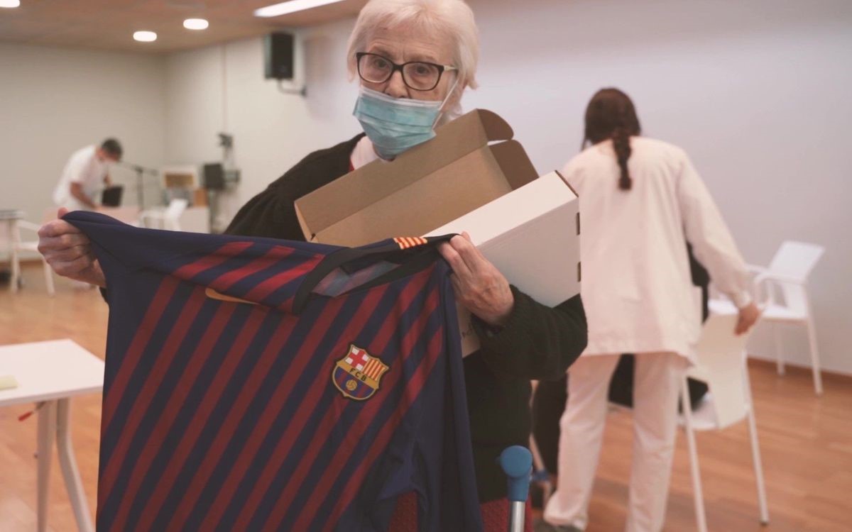 La entrega de las camisetas no se pudo hacer de manera presencial, respetando así las medidas de seguridad pertinentes. Por ello, cada una de las residencias llevó a cabo diferentes acciones especiales, organizadas de manera conjunta con la Agrupación, para hacer la entrega de los obsequios. Uno de los ejemplos son los centros del Grupo Gran Vida, organización que recientemente ha firmado un convenio con la Fundación de Jugadores, que entregó las camisetas en la Residencia de San Antonio Abad, en L’Arboç, tras un bingo entre los usuarios del centro. Por otra parte, las residencias del Grupo Mutuam disfrutaron de una videoconferencia con el exjugador azulgrana, Paco Martínez, quien compartió anécdotas y momentos especiales de su etapa en el Club y de la consecución de la Recopa de Europa en Basilea el año 1979. De aquella final el exfutbolista recordó «que se ganó esencialmente por el apoyo tan grande que tuvimos de la afición». Además, también recibieron camisetas los dos hogares de ancianos gestionadas por el exjugador Xavi Guzmán, situadas en Sabadell y Terrassa.
