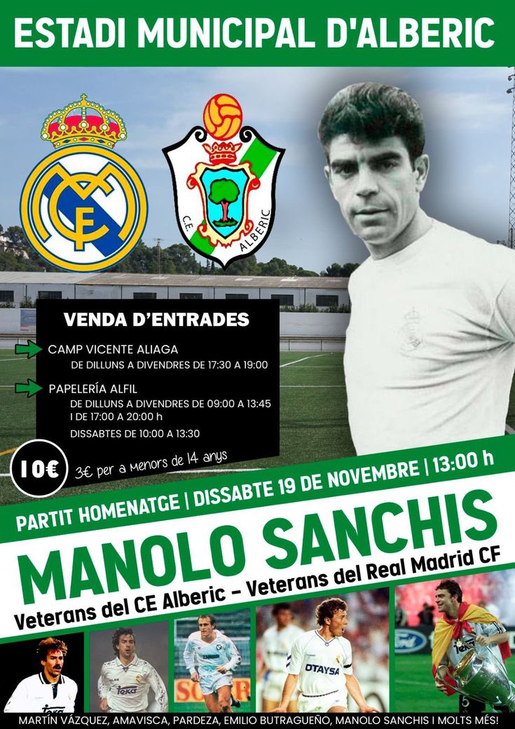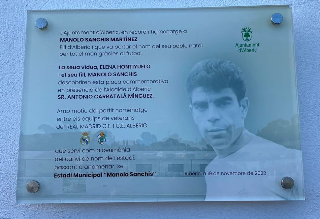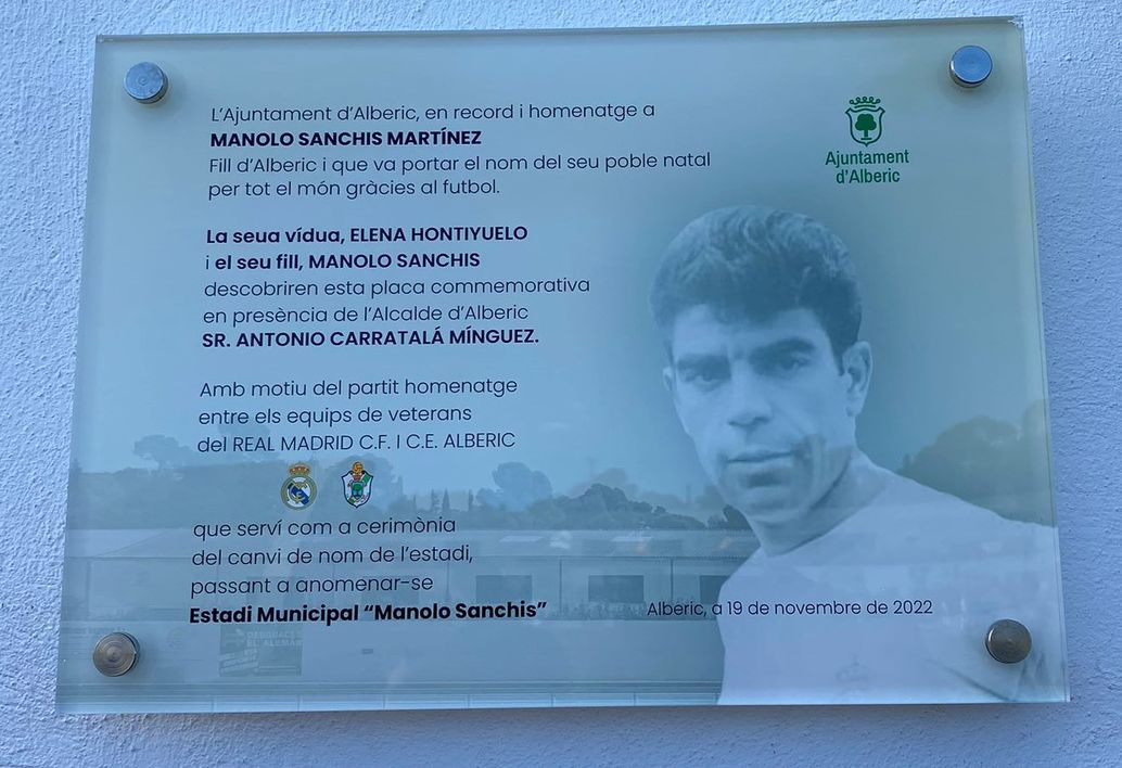 El acto, organizado por el Ayuntamiento de su localidad natal, en el que el Real Madrid entregó dos camisetas del equipo blanco con el dorsal número 3, sirvió para hacer oficial la puesta de largo del estadio municipal de Alberic con el nombre de Manuel Sanchís Martínez.