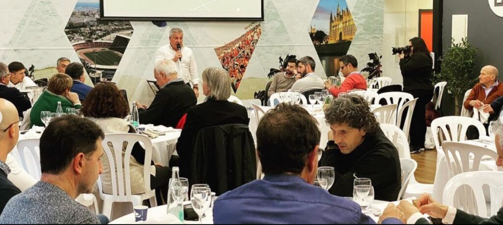 Palma de Mallorca, 3 de diciembre de 2022. La Asociación de Exjugadores del RCD Mallorca ha celebrado este jueves su tradicional comida de final de año, un emotivo encuentro a manteles que congregó en las entrañas de Son Moix a una porción notable de la historia del club para celebrar las próximas fiestas navideñas, recordar a los que ya no están y brindar por el pasado, el presente y el futuro de la entidad que ha unido sus vidas.