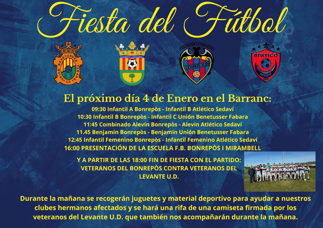 Bonrepòs i Mirambell (Valencia), 8 de enero de 2025. La Asociación de Futbolistas del Levante UD no quiso perderse la Gran Fiesta del Fútbol Base de la Escuela Bonrepòs y Mirambell del pasado sábado.