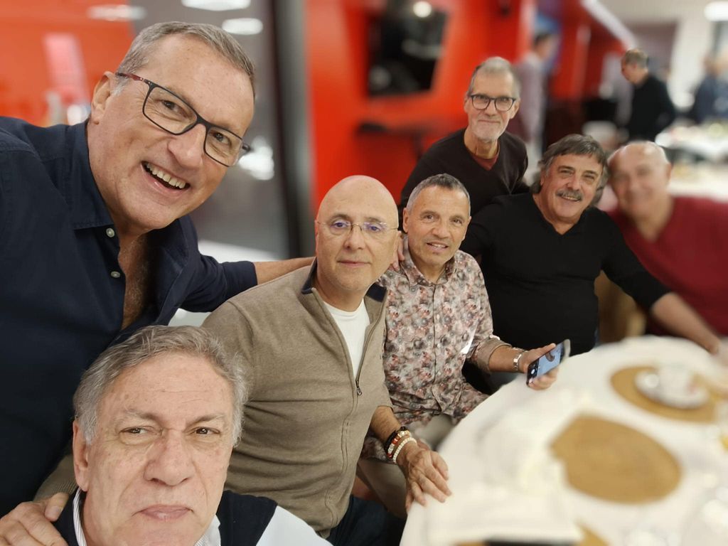 Palma de Mallorca (Islas Baleares), 21 de diciembre de 2024. La sala de trofeos del estadio de Son Moix se quedó pequeña para dar cabida a la comida de Navidad de la Asociación de Veteranos del RCD Mallorca que un año más fue un éxito y reunió a más exjugadores que nunca. Se juntaron auténticos ídolos que en diferentes etapas han ayudado a hacer grande al club bermellón.