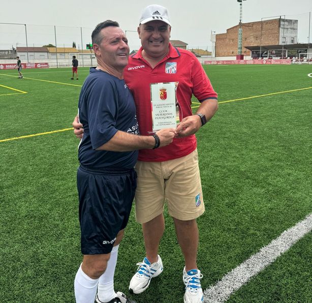 Torreperogil (Jaen), 28 de septiembre de 2024. El pasado 7 de septiembre el equipo de la Asociación de Veteranos de Futbol Fuengirola se desplazó hasta la localidad jienense de Torreperogil para disputar un partido de futbol de veteranos homenaje a Diego Montiel y Abdón Jiménez, dos personas que hicieron mucho por el deporte en la localidad.