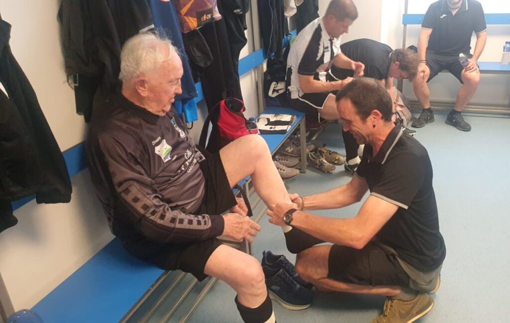 Sonrisas, anécdotas y múltiples ‘batallitas’ en la previa, durante el partido amistoso y en el clásico tercer tiempo que tanto disfrutan los veteranos entre dos amigos que 60 años después volvieron a verse y recordar momentos pasados en blanquiazul.