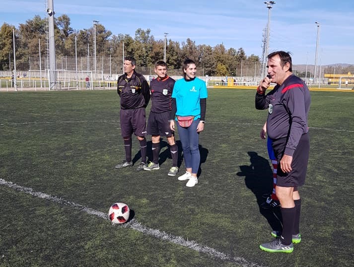 Algeciras (Cádiz), 24 de noviembre de 2019. Los veteranos de la Balona y del Algeciras CF se citaron el pasado domingo en los campos anexos de La Menacha para celebrar un partido benéfico para colaborar con la investigación contra el cáncer infantil. La cita tuvo una entrada voluntaria de un solo euro.
