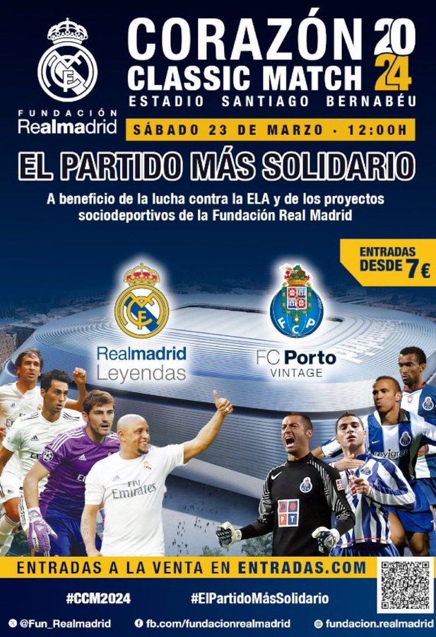 En lo deportivo el Real Madrid Leyendas cayó derrotado por 0-1 FC Porto Vintage.