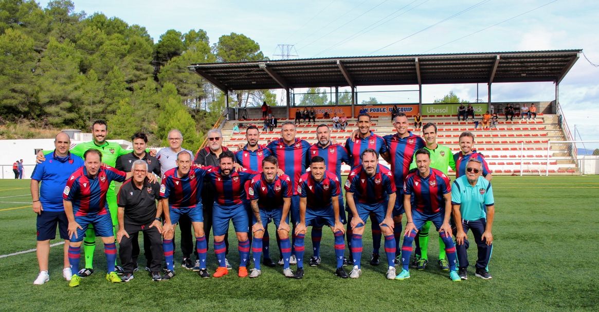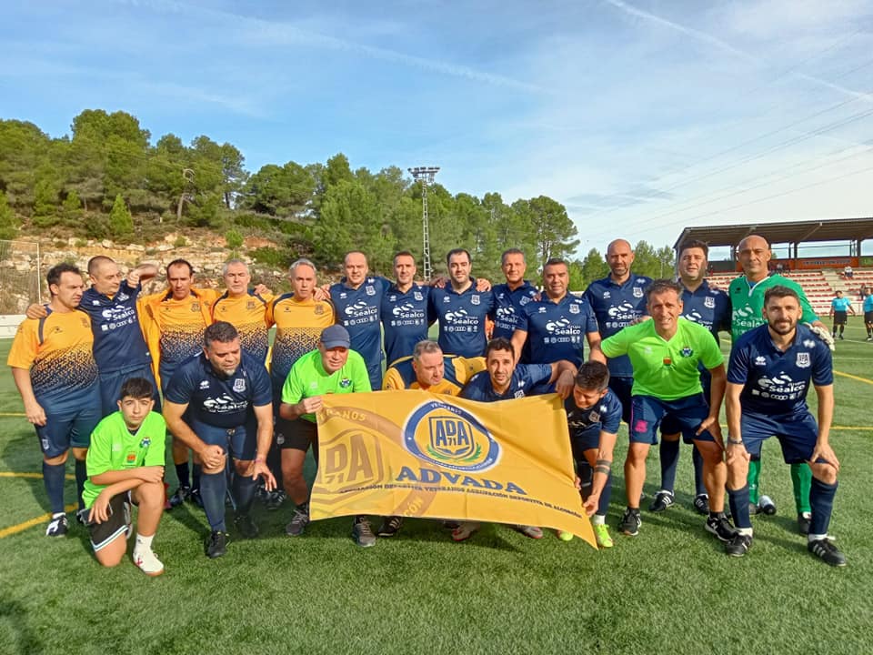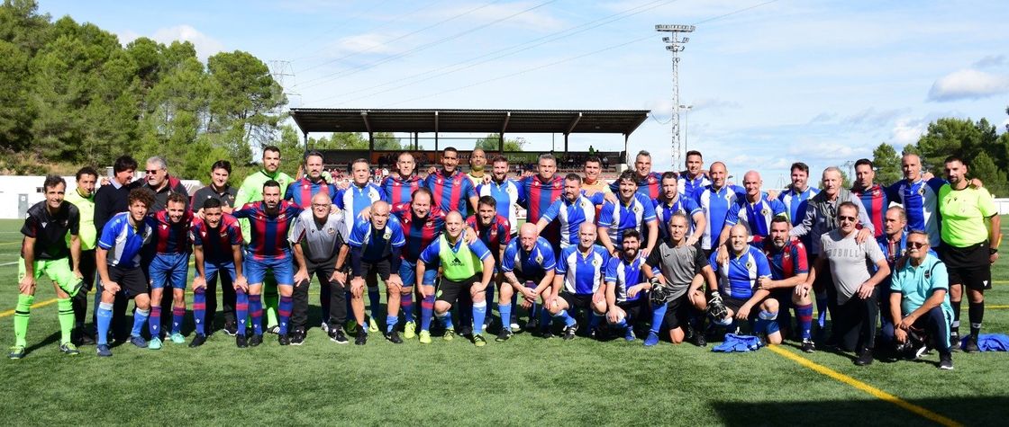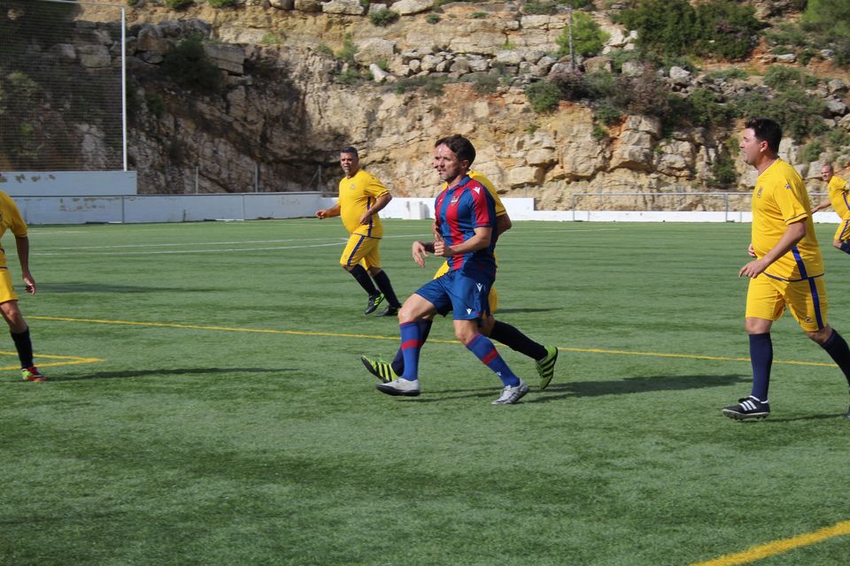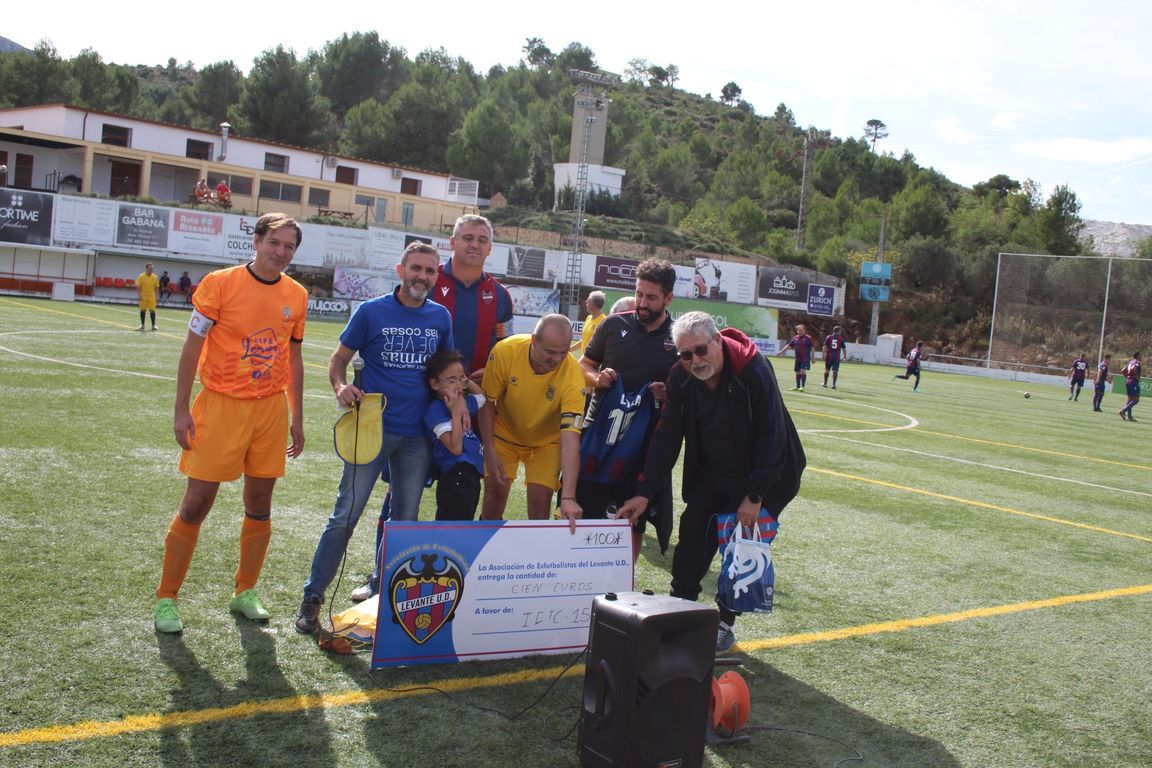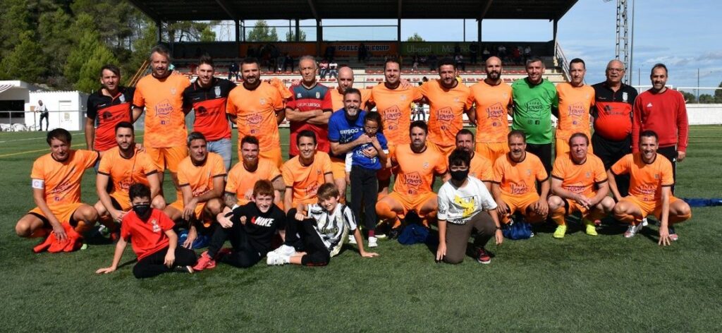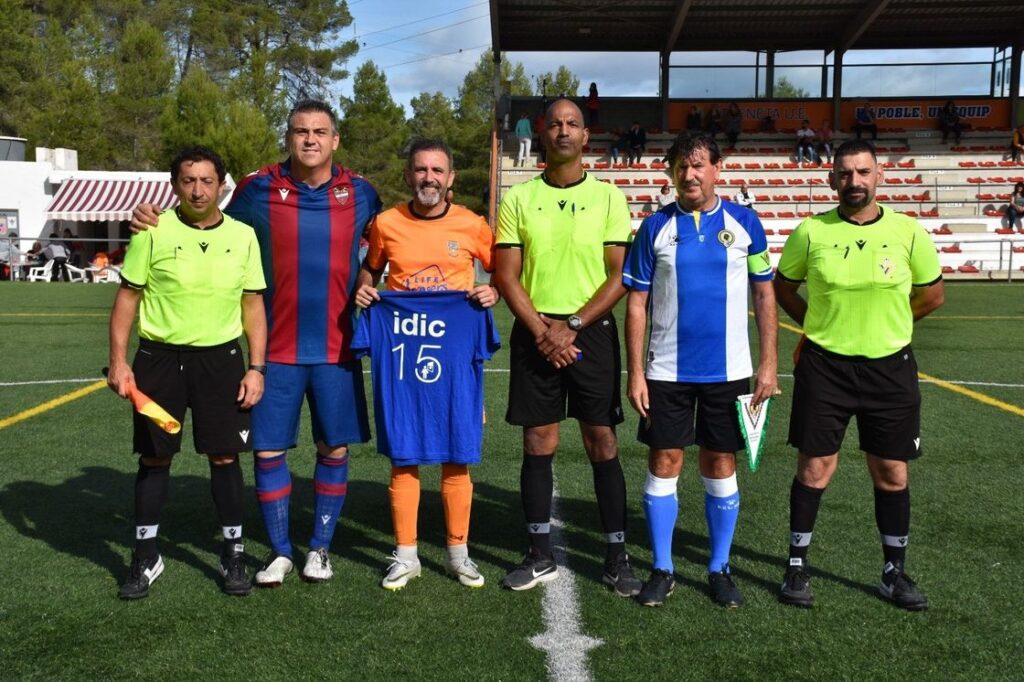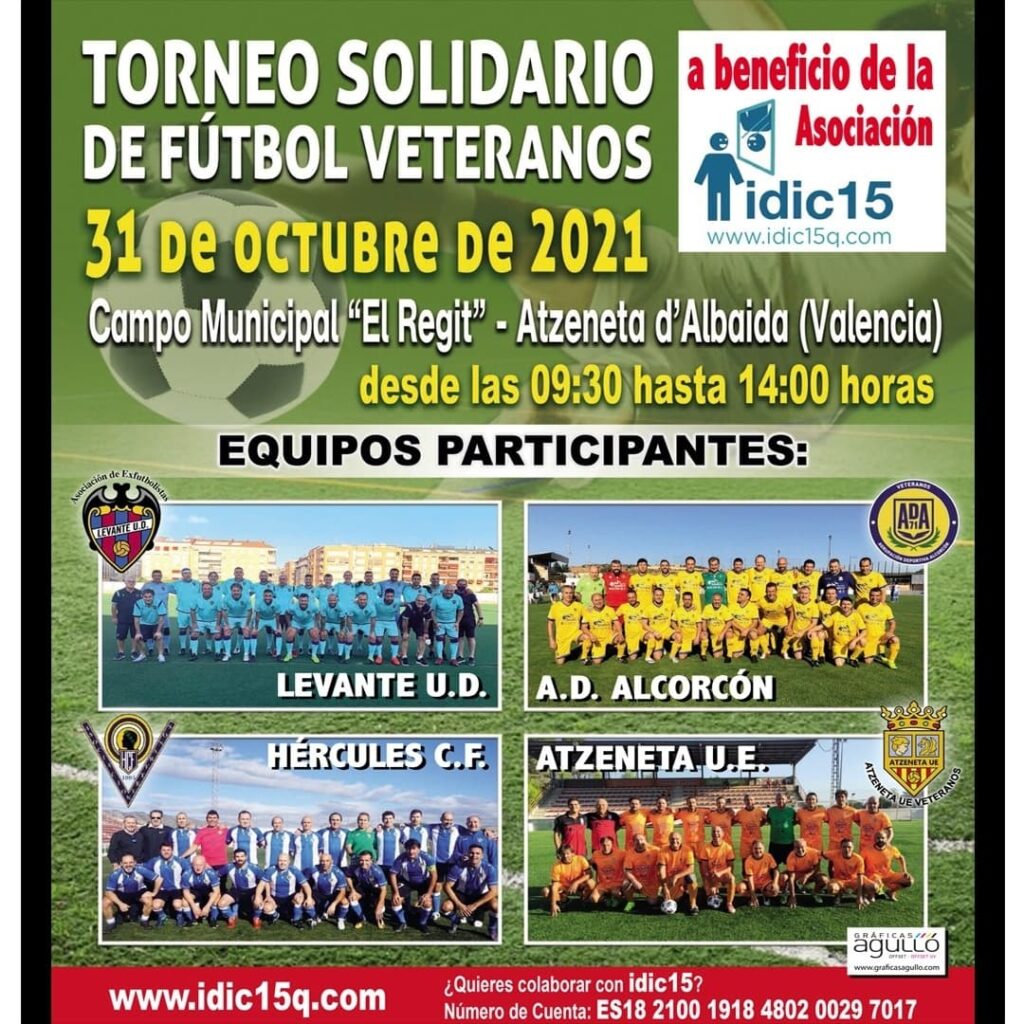 Atzaneta de Albaida (Valencia), 31 de octubre de 2021. Los equipos de fútbol de las Asociaciones de veteranos de la Agrupación Deportiva Alcorcón, Levante UD Veteranos y Hércules CF se desplazaron el pasado domingo 31 de octubre hasta la localidad valenciana de Atzaneta de Albaida para disputar un torneo de futbol de veteranos entre cuatro entidades amigas a favor de una nueva causa solidaria, recaudar fondos a favor de la Asociación Idic 15, que luchan por conseguir ayudas para el estudio e investigación de la enfermedad rara de la inversión duplicación del cromosoma 15.