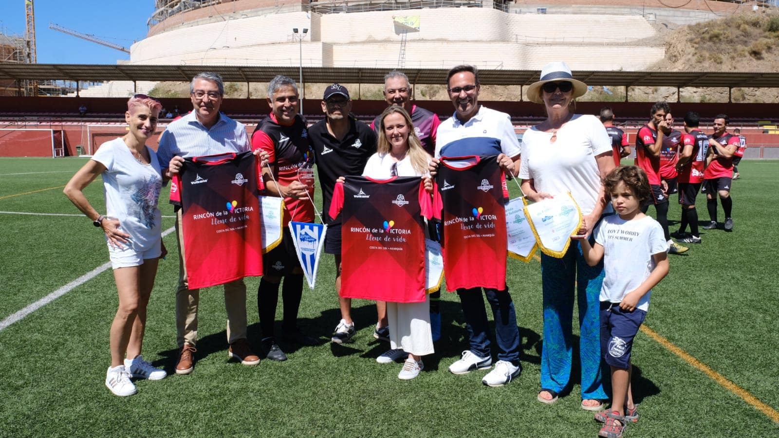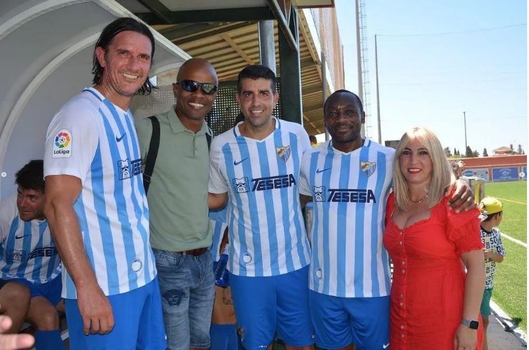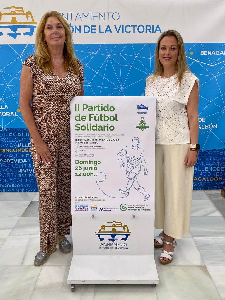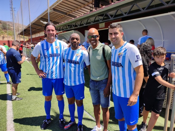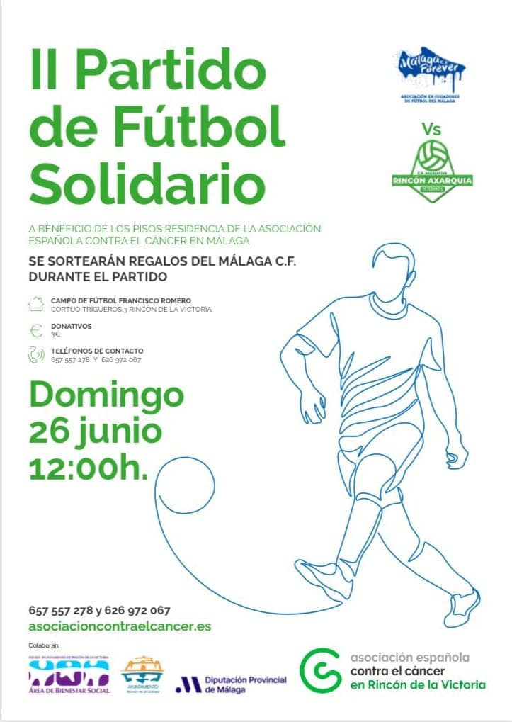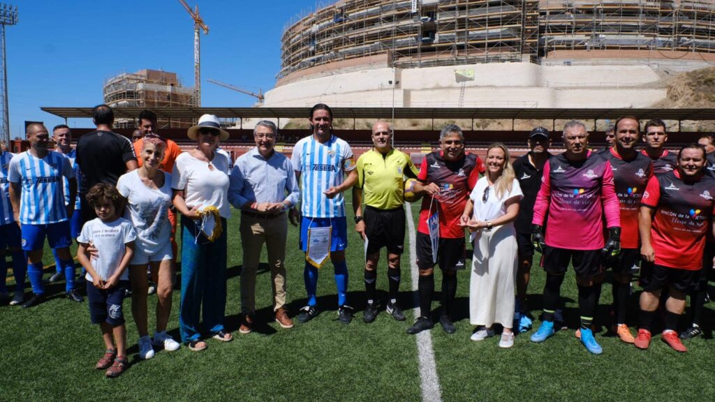 La II edición del Partido de Fútbol Solidario, a beneficio de la AECC en Málaga contó con el patrocinio de la Diputación Provincial de Málaga, la colaboración del Ayuntamiento con su Alcalde Francisco Salado a la cabeza, que ha asistido y disfrutado, junto con una notable presencia de público, del entretenido amistoso ente los veteranos del CD Recreativo Rincón Axarquía y las leyendas blanquiazules, que contaron con exjugadores como Calatayud, Jesule, De los Santos, Juanito, Apoño o la nueva coordinadora del MCF femenino, Alicia Fuentes, arropados desde la grada por su excompañero Dely Valdés quien fue una de las atracciones del encuentro.
