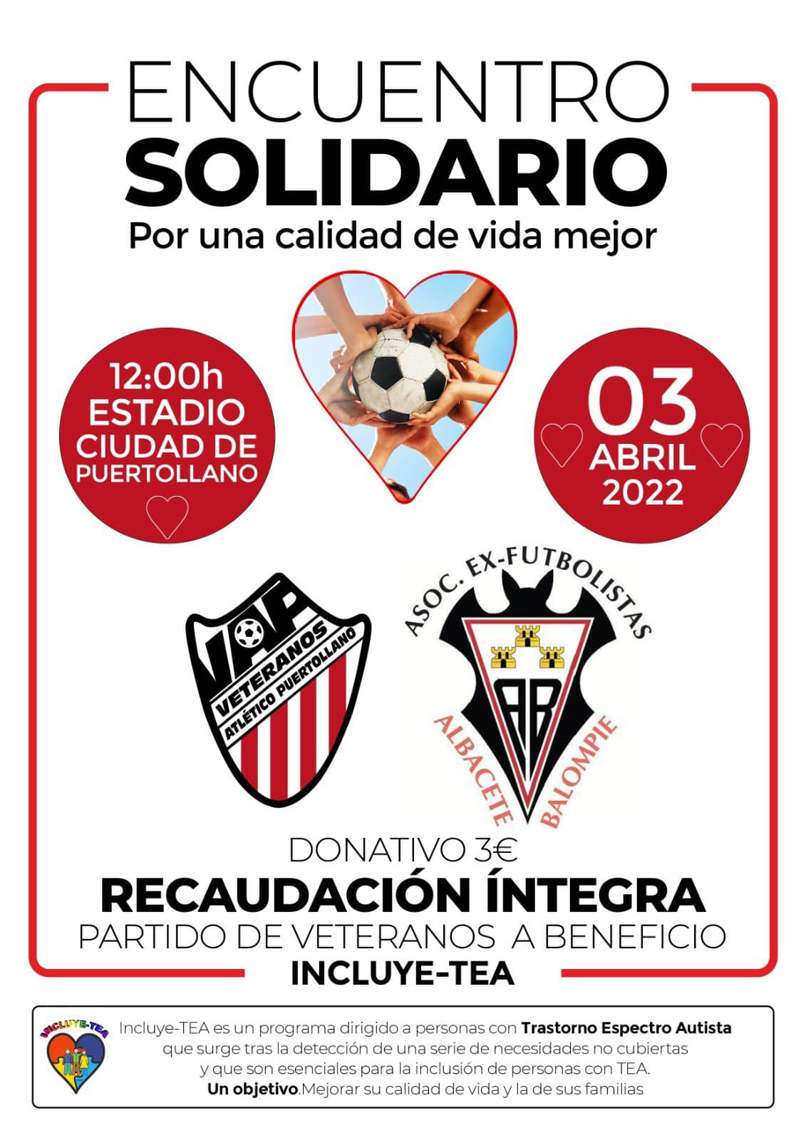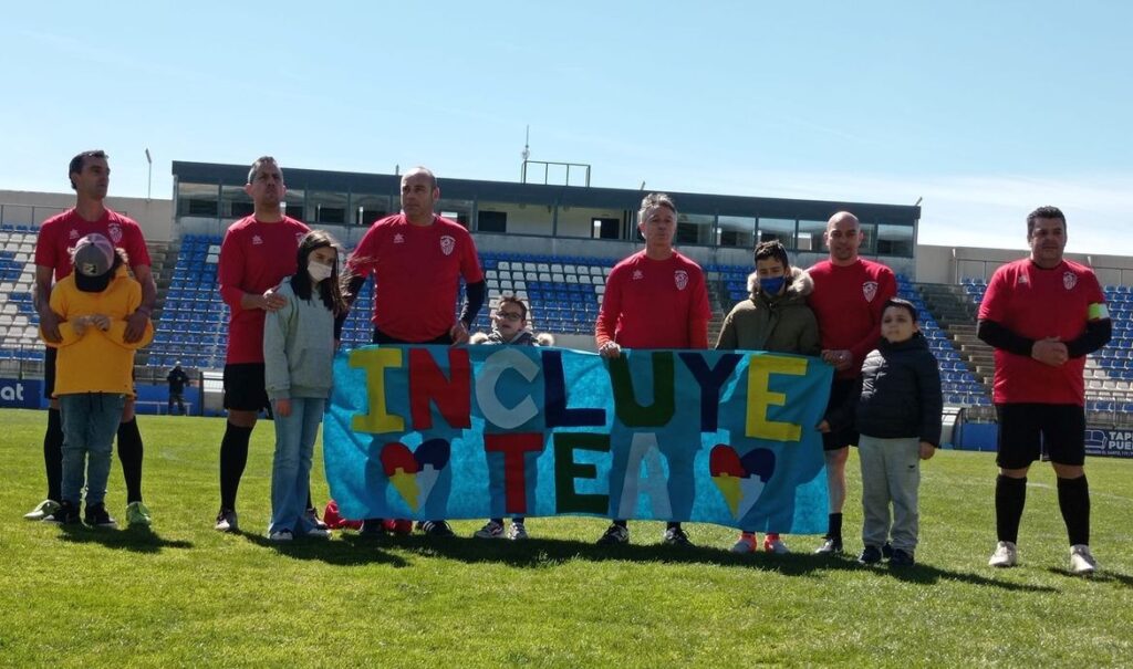 Puertollano (Ciudad Real), 5 de abril de 2022. El equipo de veteranos de la Asociación Exfutbolistas Albacete Balompié se desplazó el pasado domingo a la localidad de Puertollano para disputar un partido de fútbol solidario con motivo de recaudar fondos a beneficio del Proyecto INCLUYE-TEA, programa integral cuyo objetivo general es la integración socio-laboral de la personas con Trastorno del Espectro del Autismo (TEA) y así, tratar de mejorar su calidad de vida y la de sus familias.