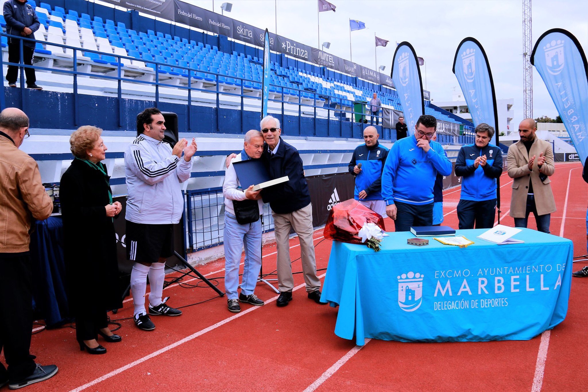 Los diversos clubes locales han asistido al acto, entre los que estaban las Asociaciones de Veteranos del Cultural y Marbésula, le han hecho entrega de una placa en reconocimiento a su labor con el fútbol base marbellí.