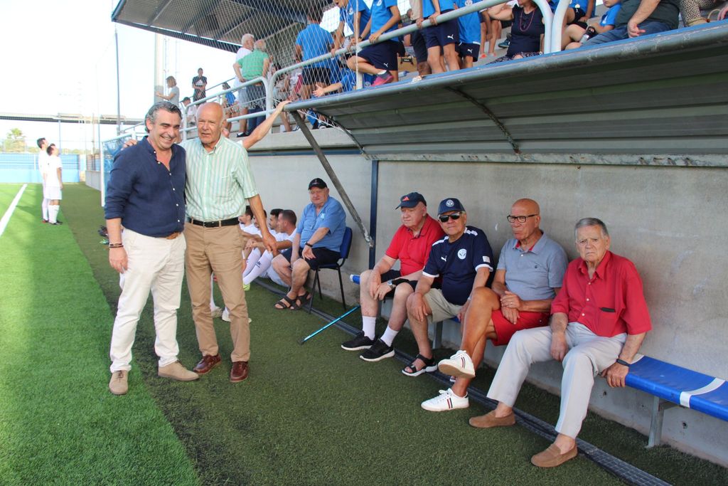 Tras el correspondiente intercambio de presentes, las nietas del mítico jugador hicieron el saque de honor entre dos conjuntos, el de la Asociación de Futbolistas, que tenía como capitán a Sergio Lloret Manzanera, que compartió vestuario con el homenajeado.